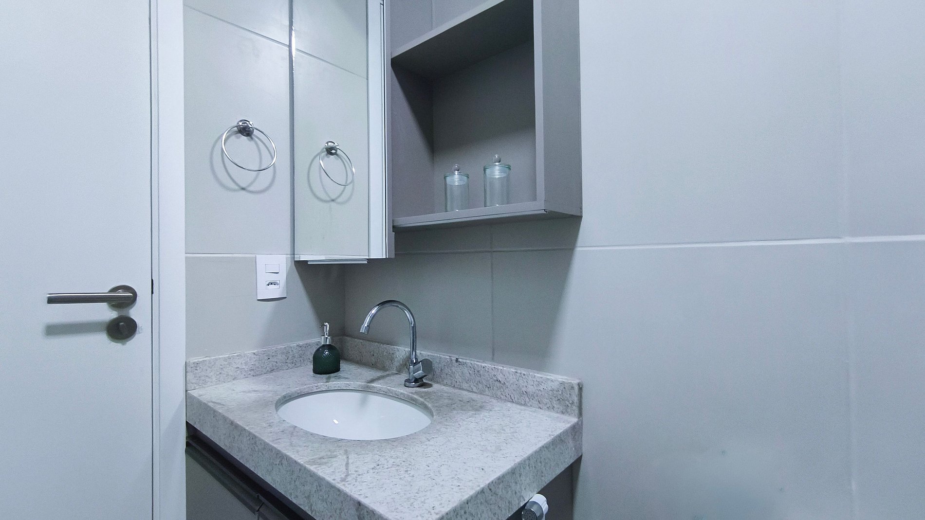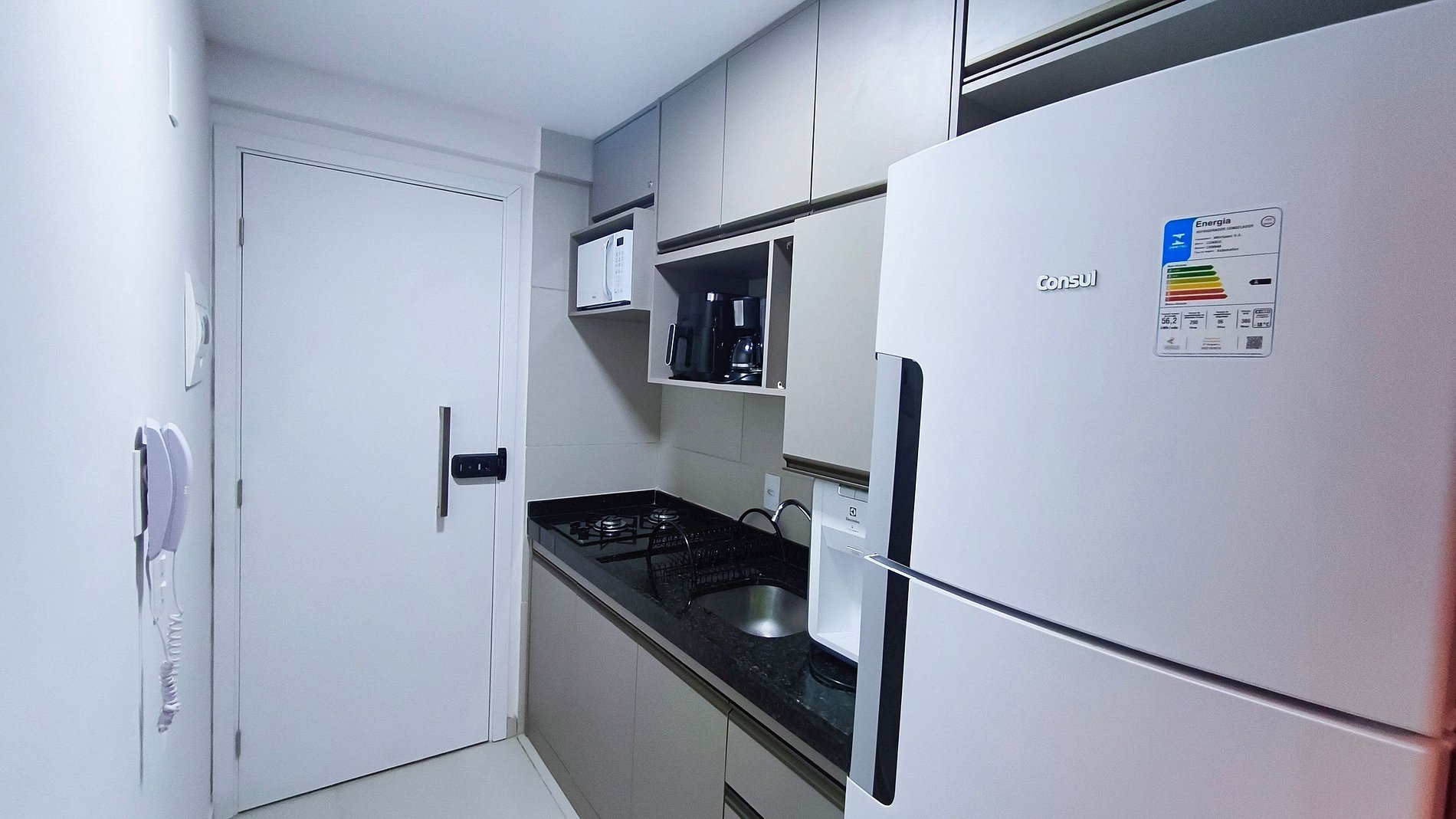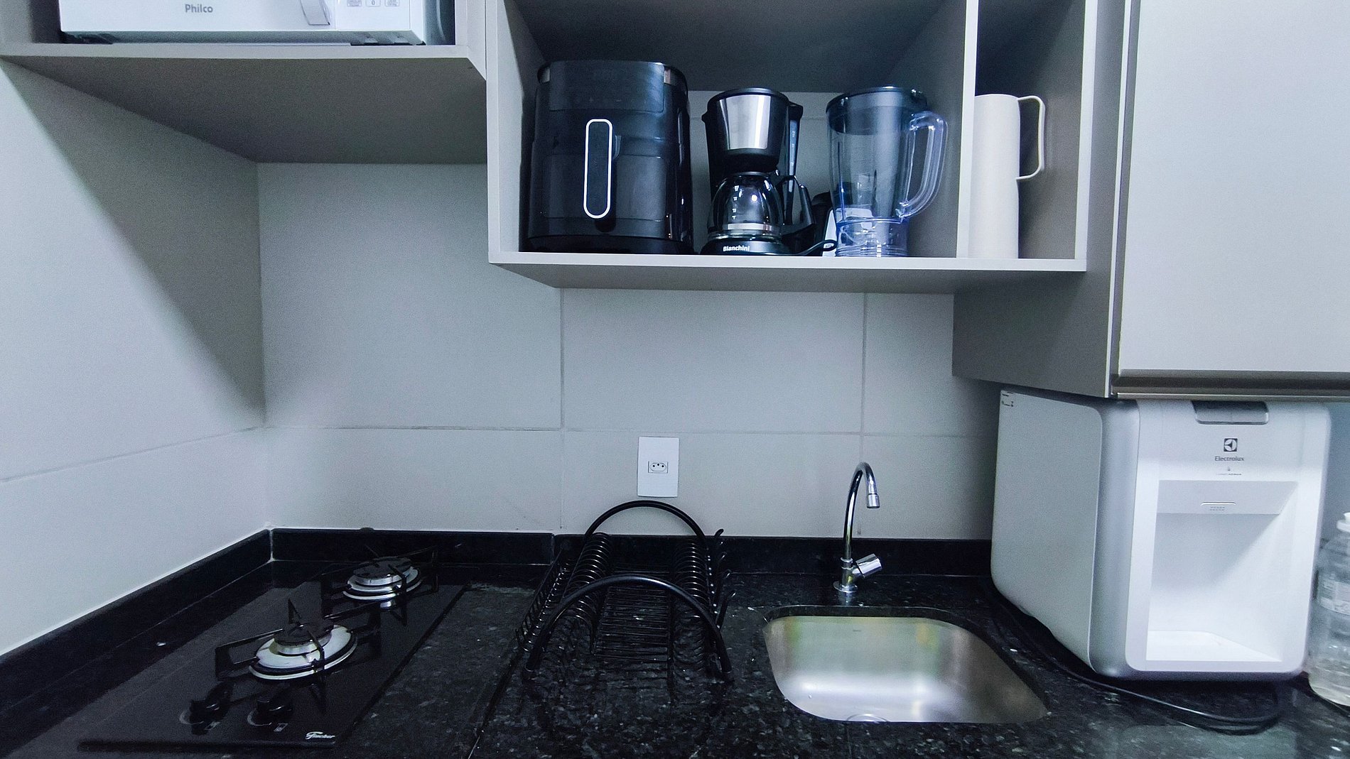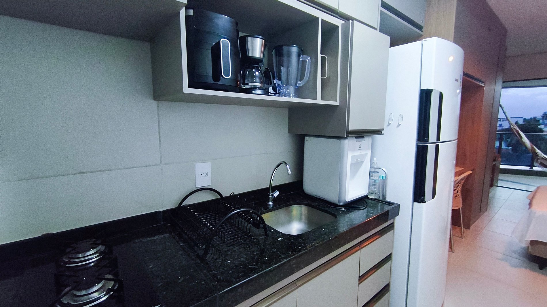 No imóvel você encontrará uma decoração agradável e moderna com TV, cama casal, sofá-cama e ar-condicionado. A cozinha é completa e possui diversas comodidades como louça, copos, panelas, talheres, sanduicheira, cafeteira, micro-ondas, cooktop, geladeira, gelágua, liquidificador e diversos utensílios. Possui também 01 banheiro completo.