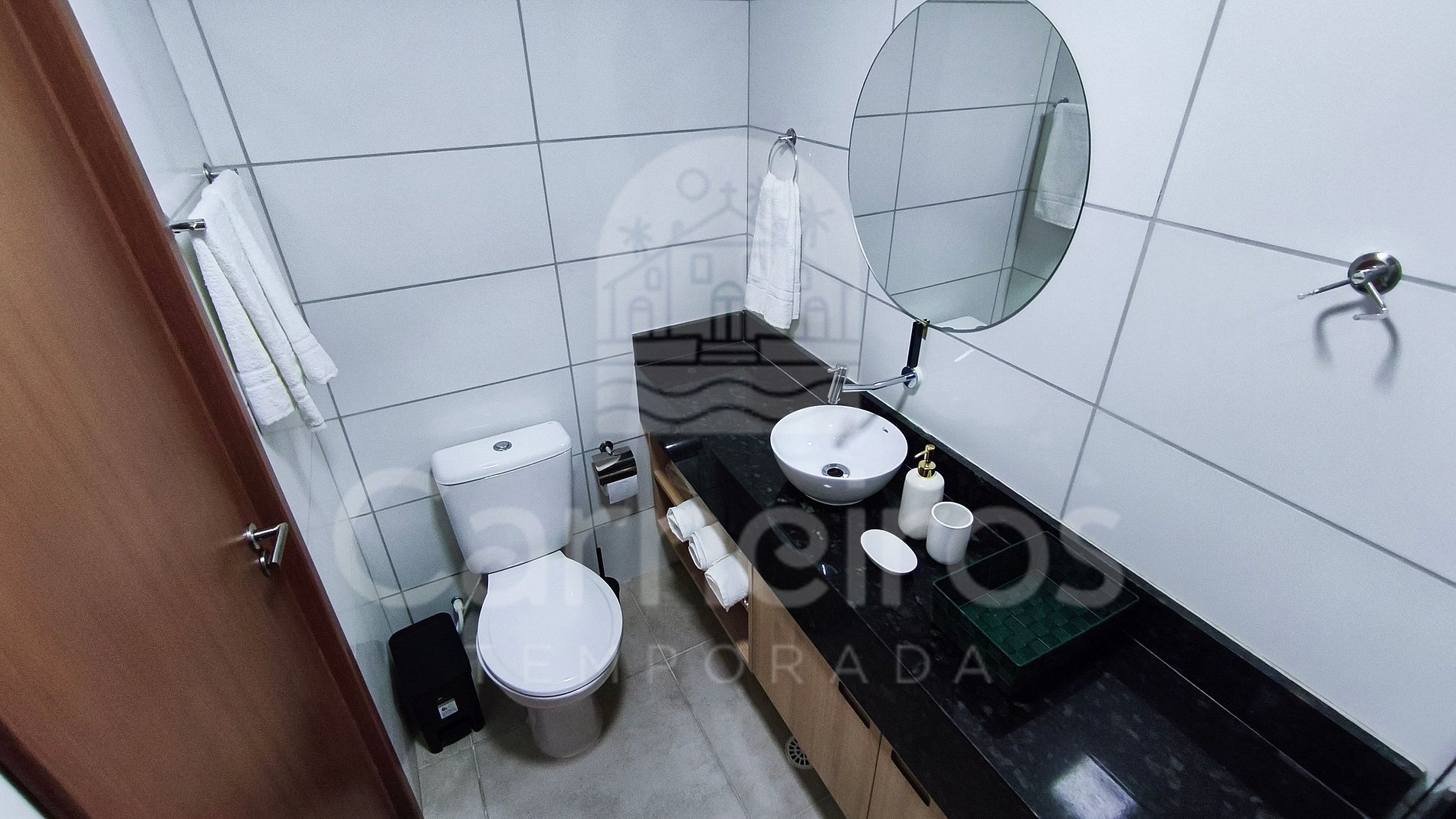 O imóvel dispõe de 02 banheiros completos, além de secador de cabelo e ferro de passar.