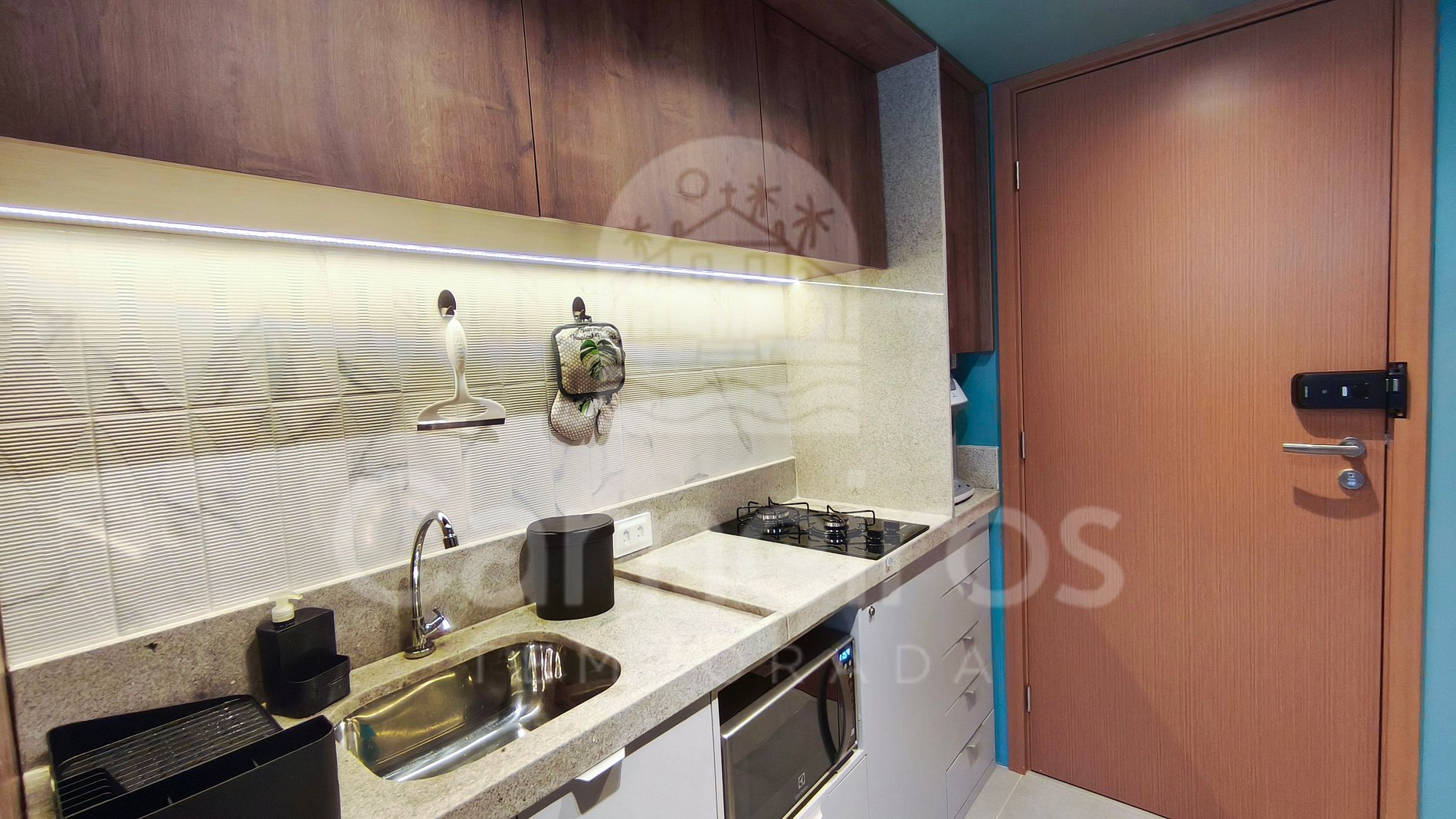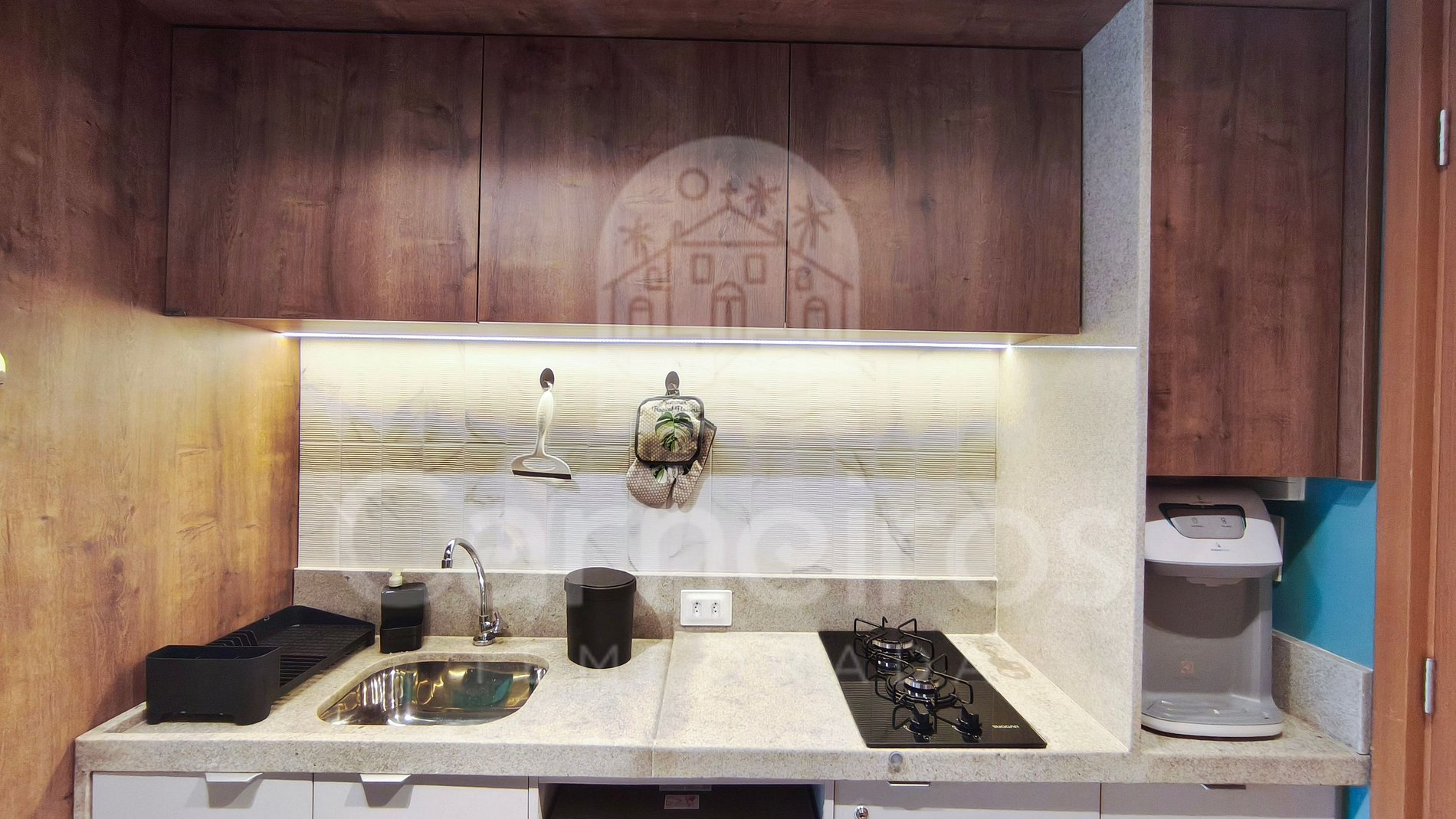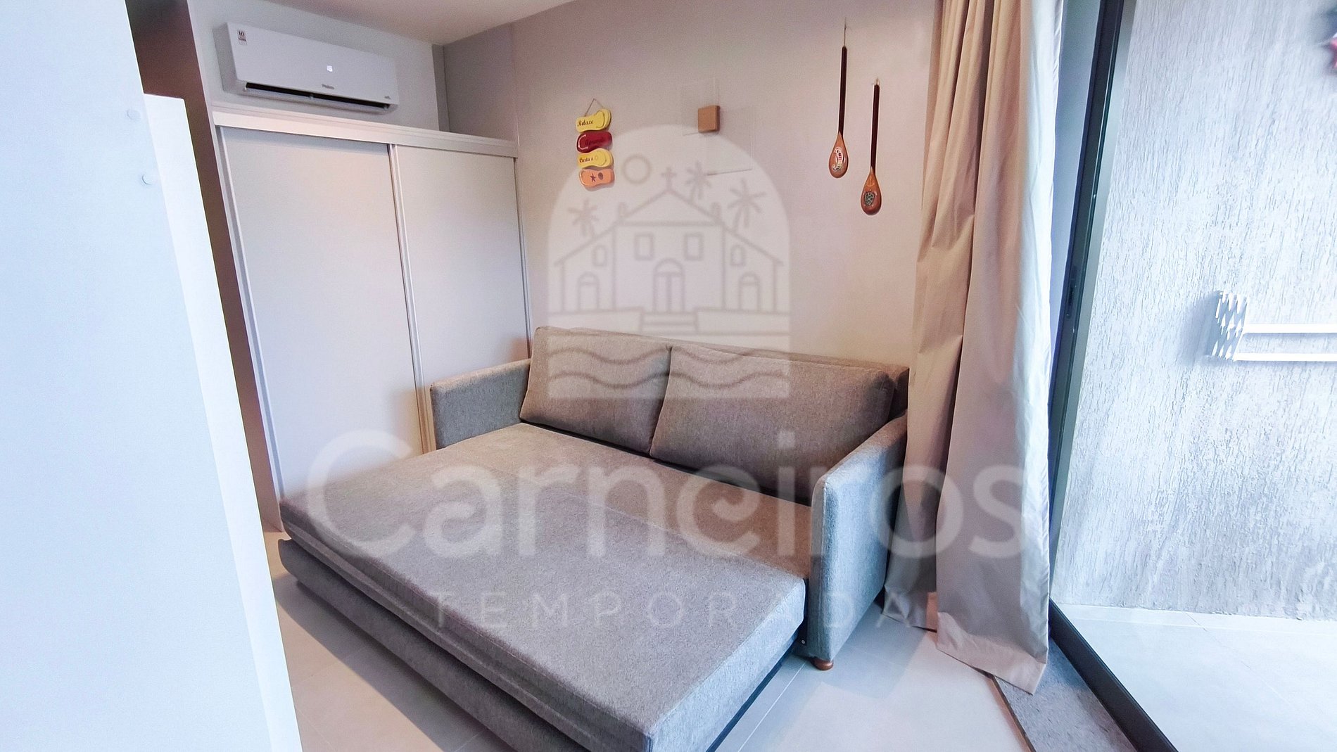 O estúdio possui ambientes integrados e decoração acolhedora, distribuídos entre varanda, quarto, cozinha e banheiro. A cozinha é totalmente equipada com geladeira, cooktop, micro-ondas, bebedouro elétrico, sanduicheira, airfryer, liquidificador e diversos utensílios para o preparo de refeições. O espaço oferece ainda Smart TV, internet Wi-Fi, ar-condicionado, além de ferro de passar, secador de cabelo e 01 banheiro completo.