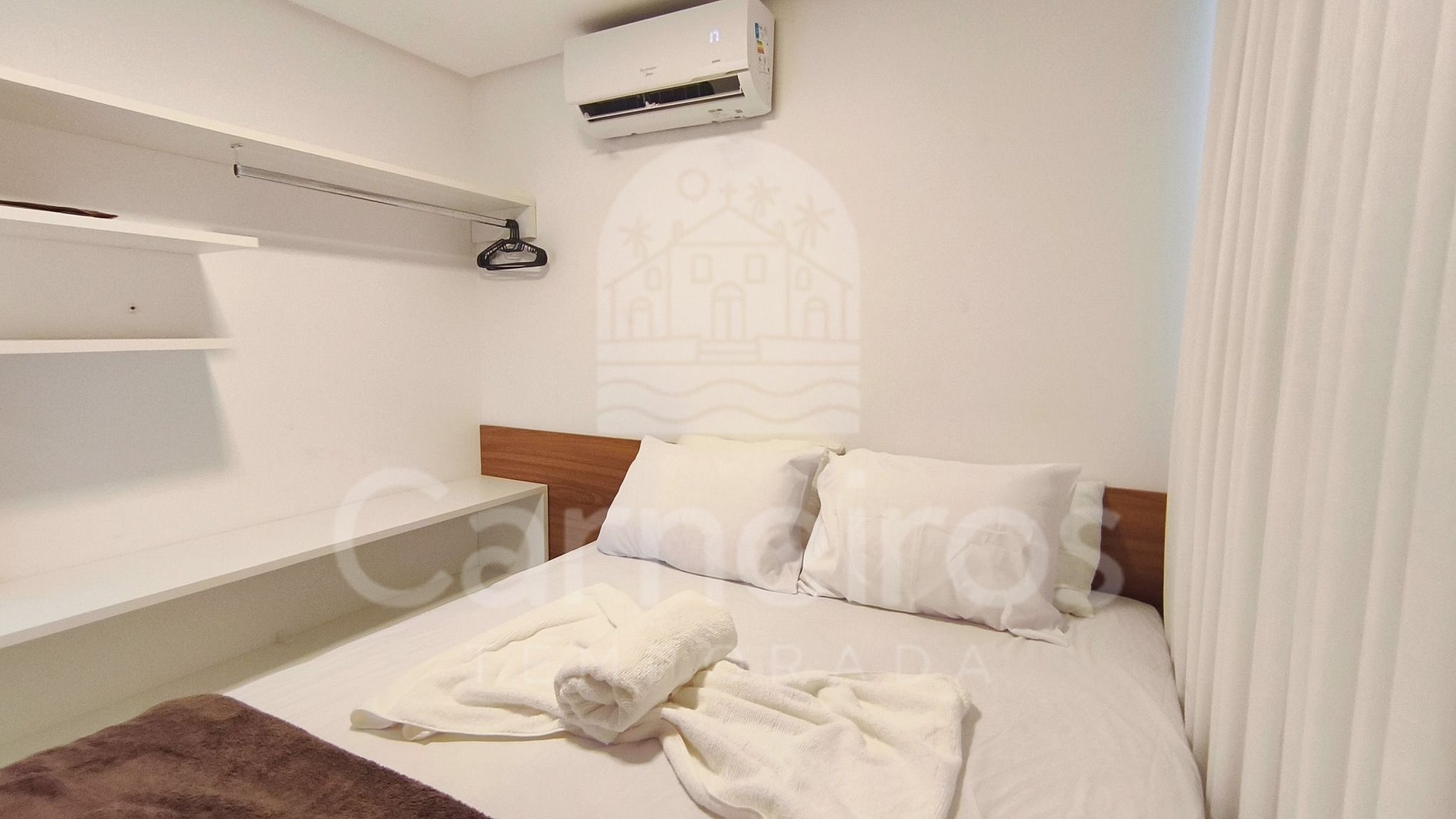 - Quarto: 01 cama de casal, armário e ar-condicionado.