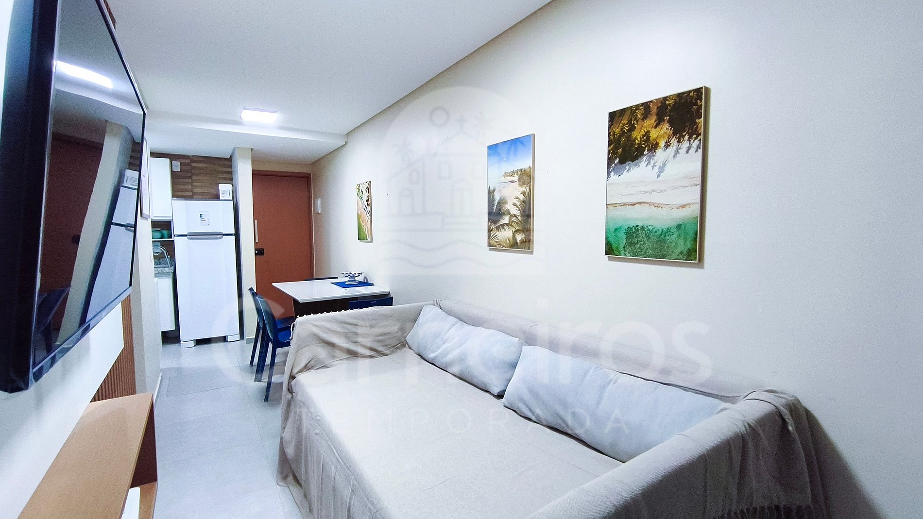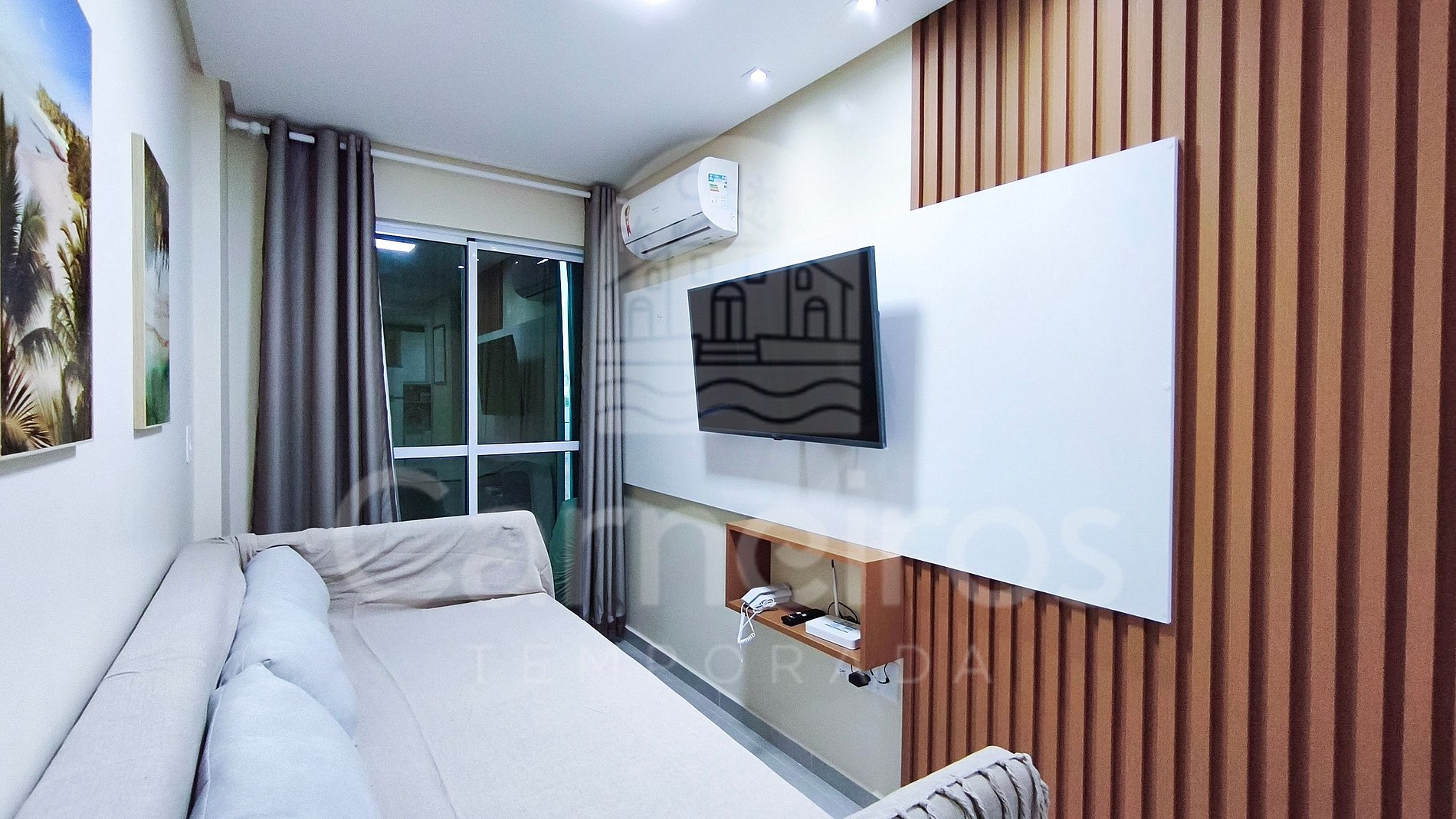 O apartamento oferece um ambiente aconchegante, bem distribuído e ideal para quem busca conforto e praticidade durante a estadia. Possui decoração moderna, TV, sofá-cama, mesa para refeições e é totalmente climatizado.