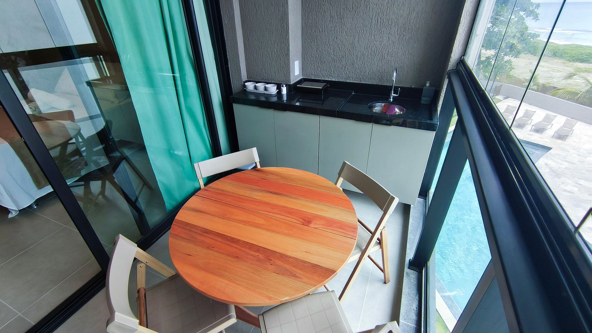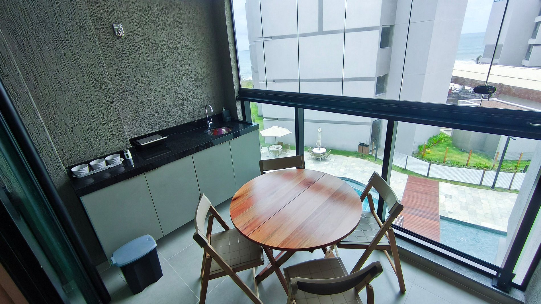 ✹ Localizado no segundo andar, o imóvel oferece uma agradável vista para a piscina e conta com uma varanda aconchegante, mobiliada com mesa e cadeiras, perfeita para momentos de descanso e relaxamento. ✹