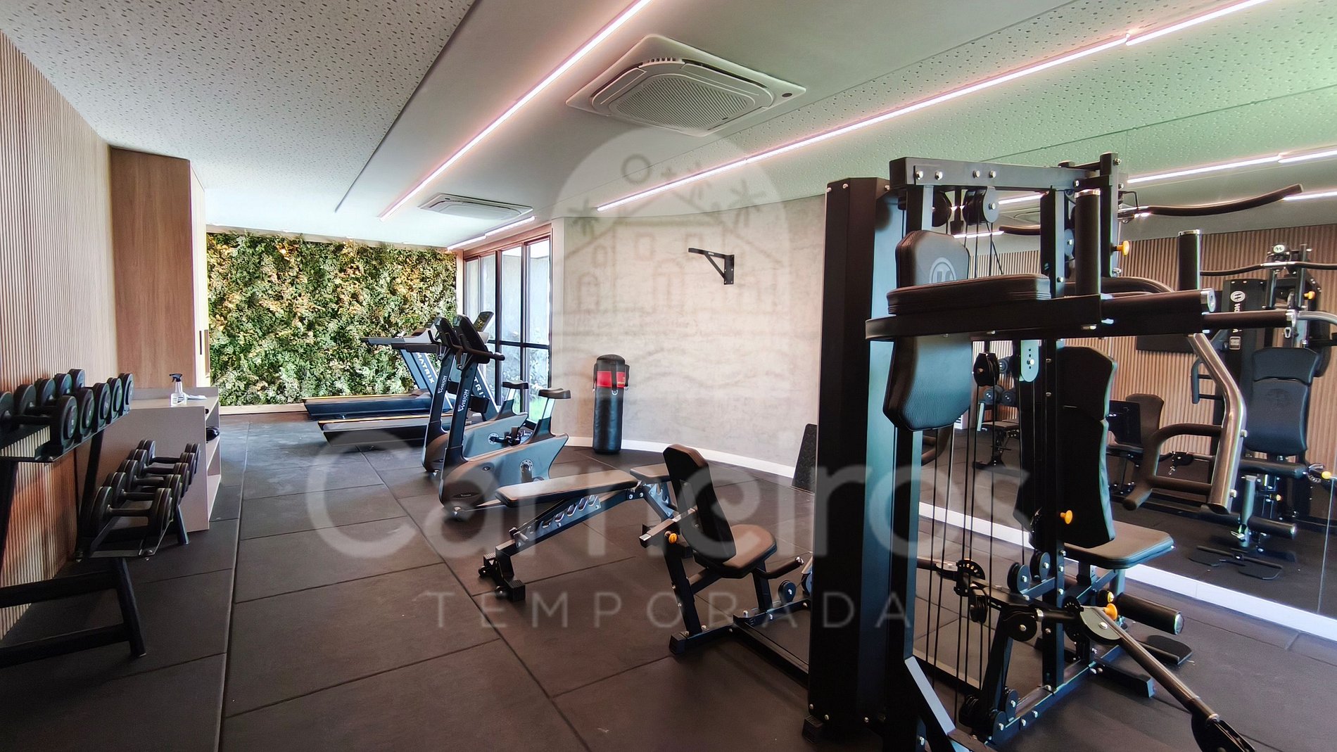 Com decoração moderna e aconchegante, o flat oferece um ambiente confortável e bem planejado. Dispõe de sofá-cama, TV, ar-condicionado, cama de casal, armário e outros itens que garantem praticidade durante a estadia.