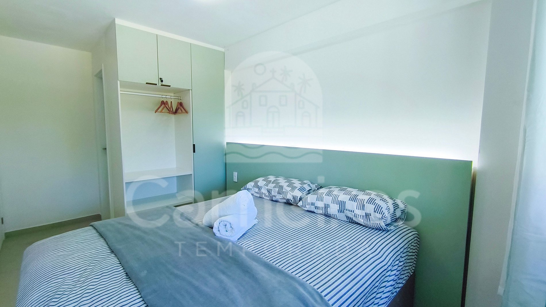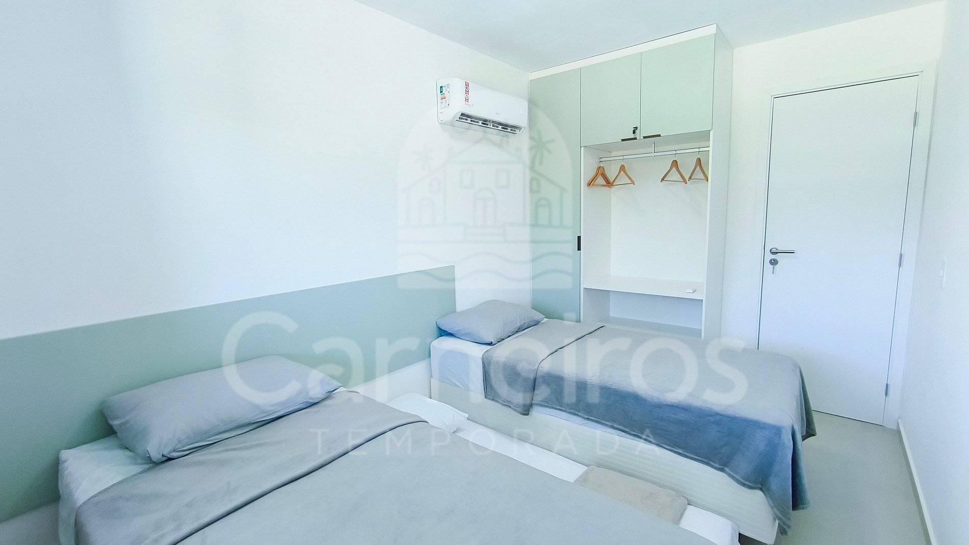 Ambos os quartos são equipados com ar-condicionado e armários