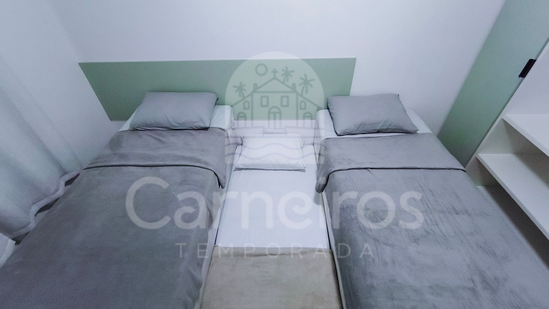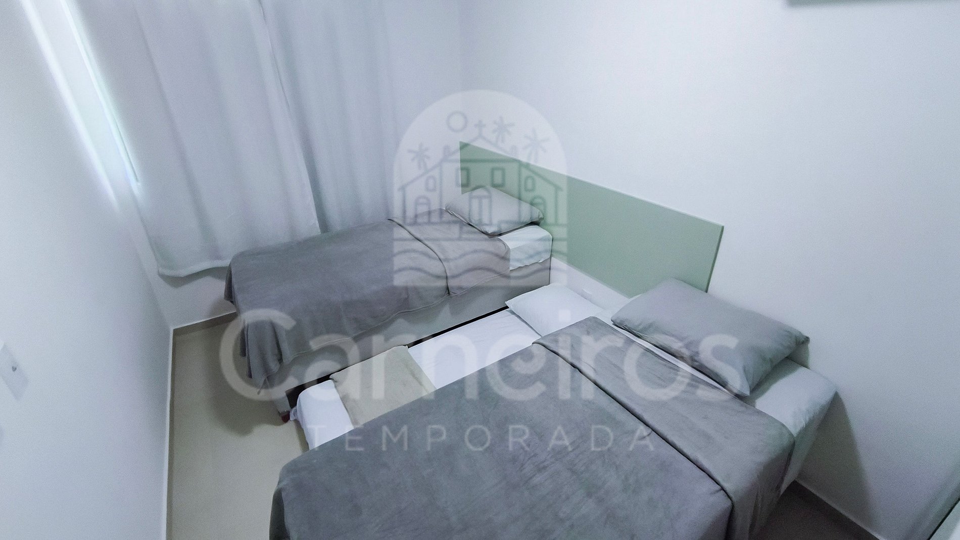 • Quarto 02: 02 camas de solteiro e 01 bicama de solteiro
