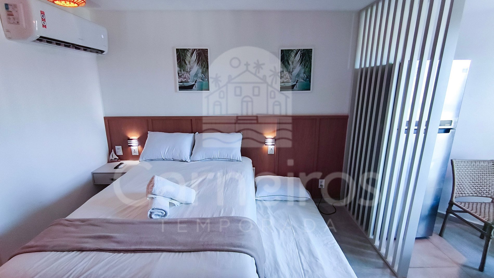 Studio com decoração contemporânea, totalmente climatizado, garantindo conforto em qualquer época do ano. O ambiente é cuidadosamente planejado, com móveis sob medida, unindo praticidade e bem-estar. Dispõe de TV e ar-condicionado, ideal para momentos de descanso e lazer.