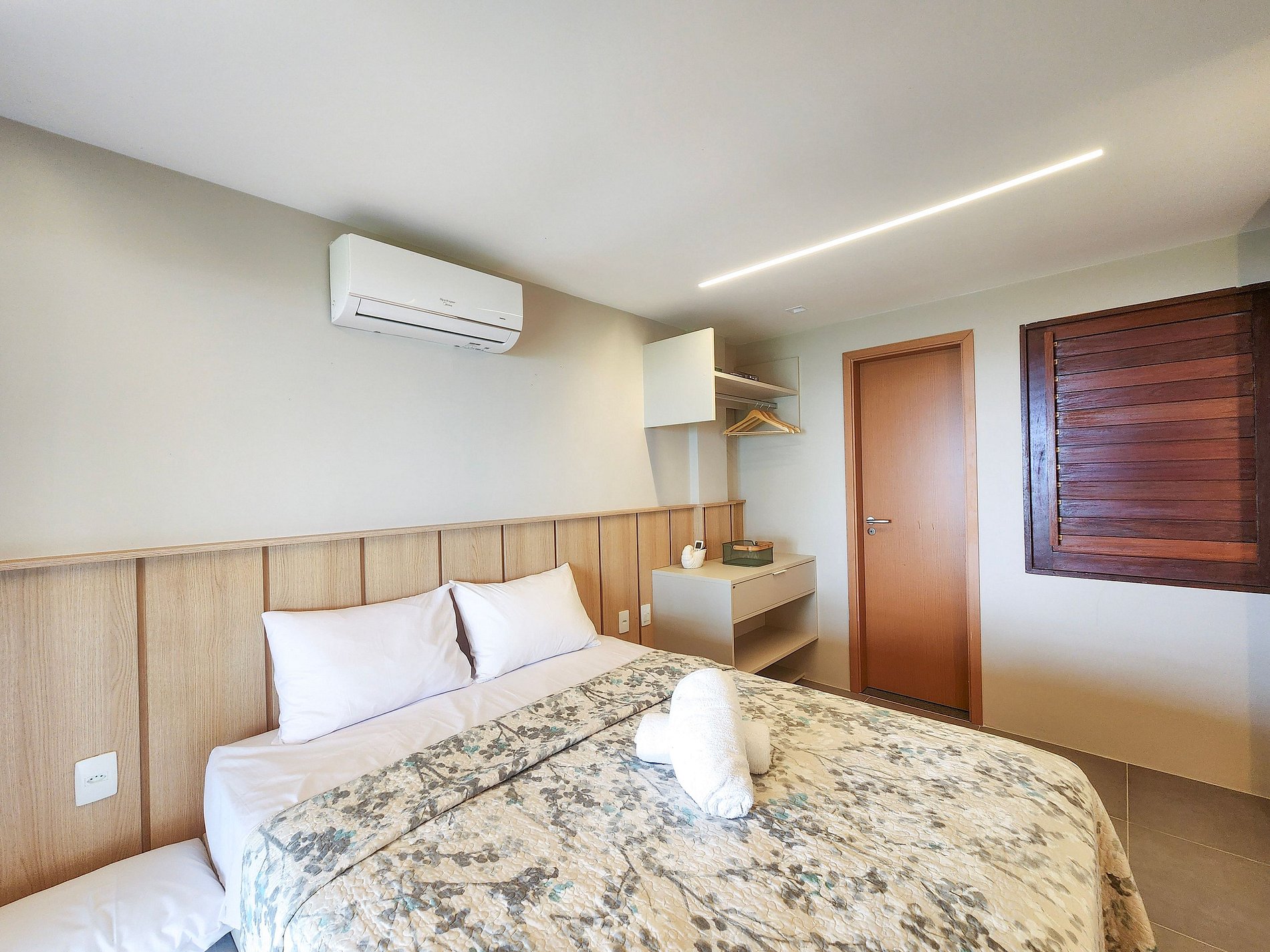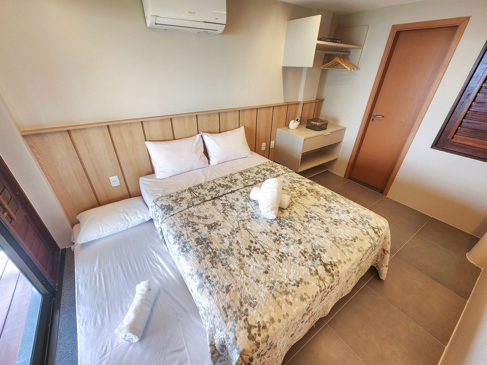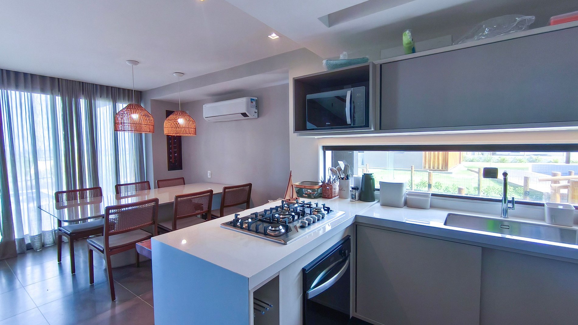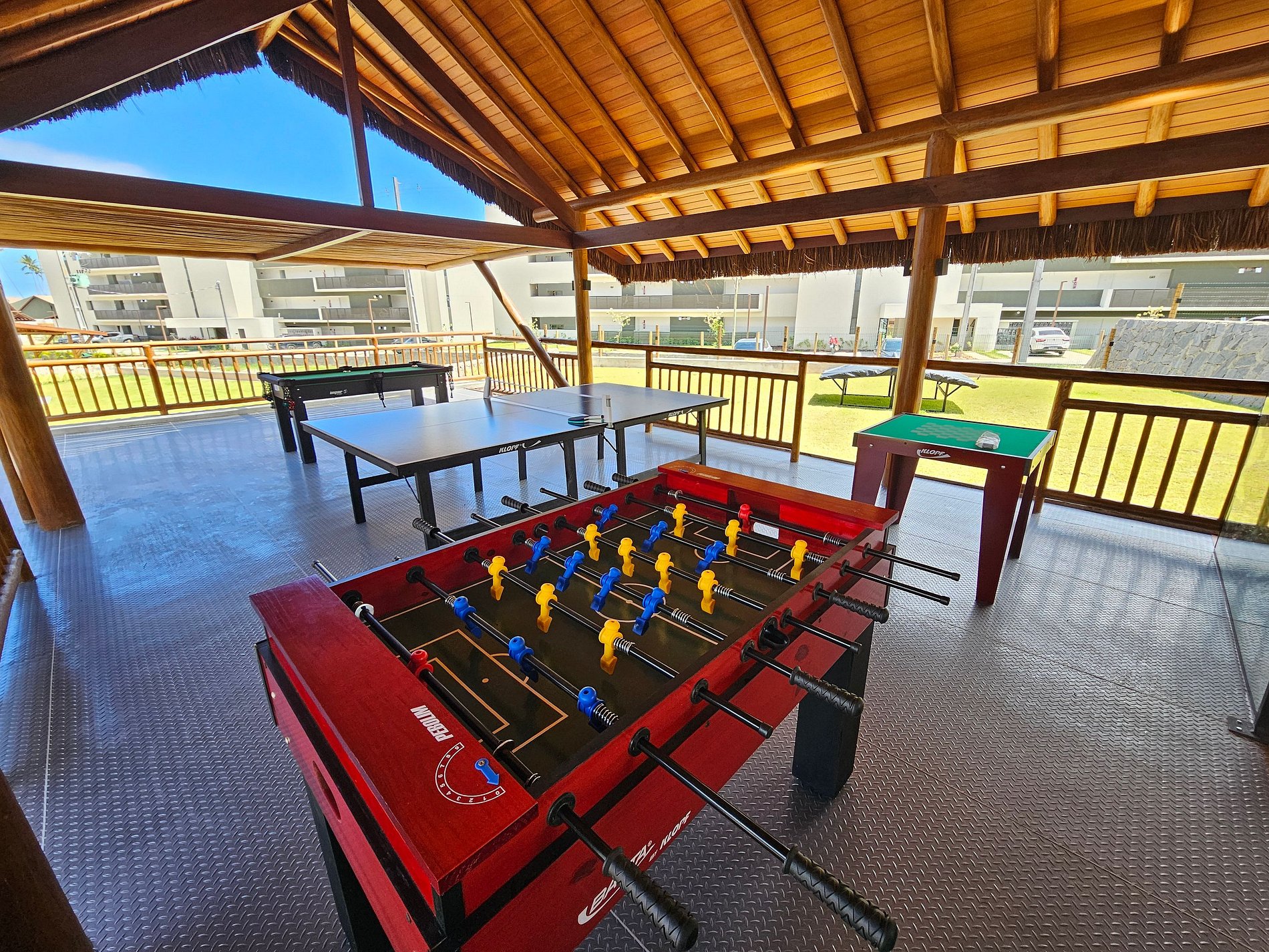 O condomínio oferece opções de lazer e conveniência, como restaurante, loja de conveniência, guarda-sóis e cadeira de praia, mesas de ping-pong, totó e futmesa, materiais esportivos, piscinas adulto e infantil, academia, espaço kids e vagas de estacionamento.