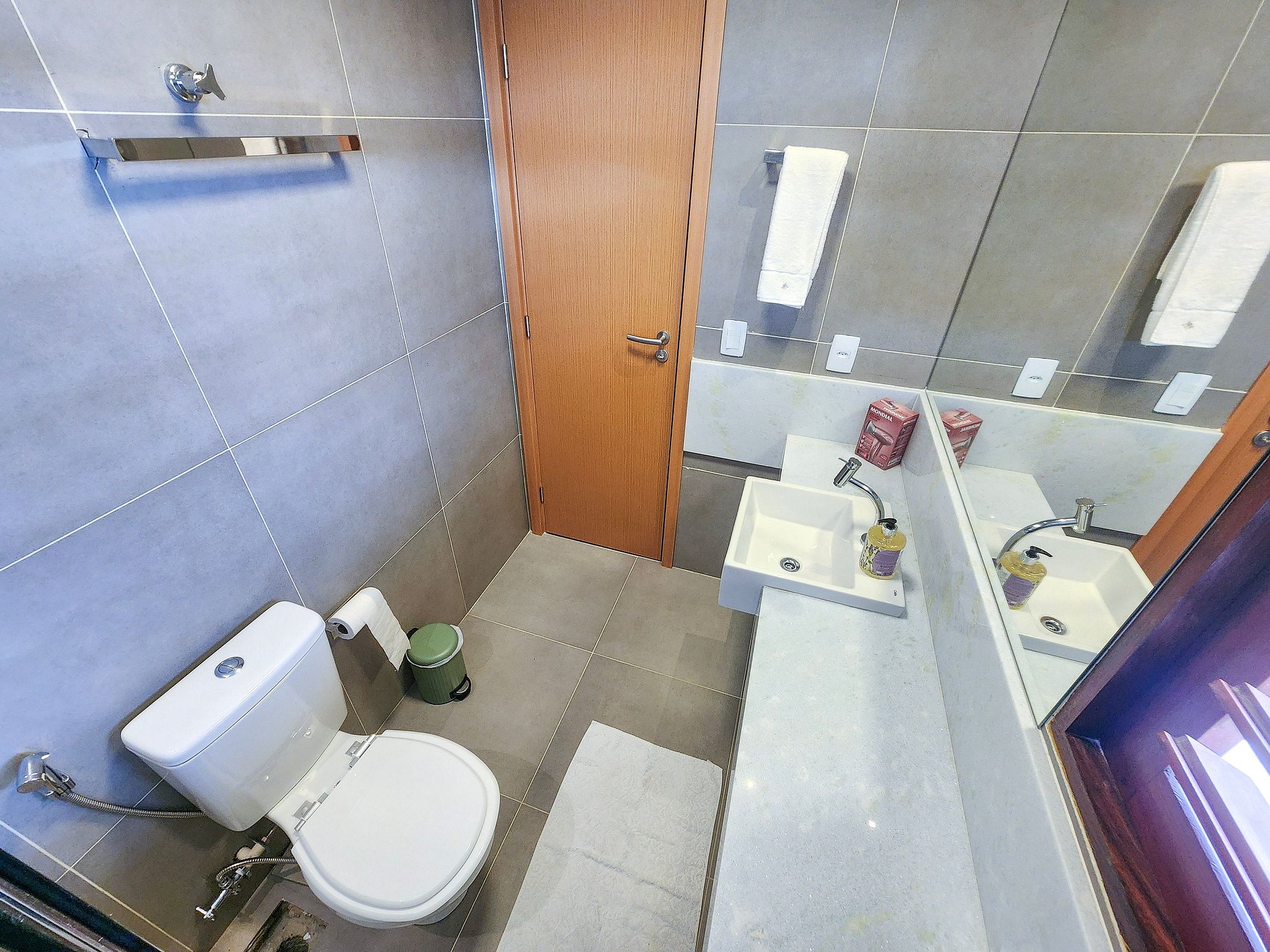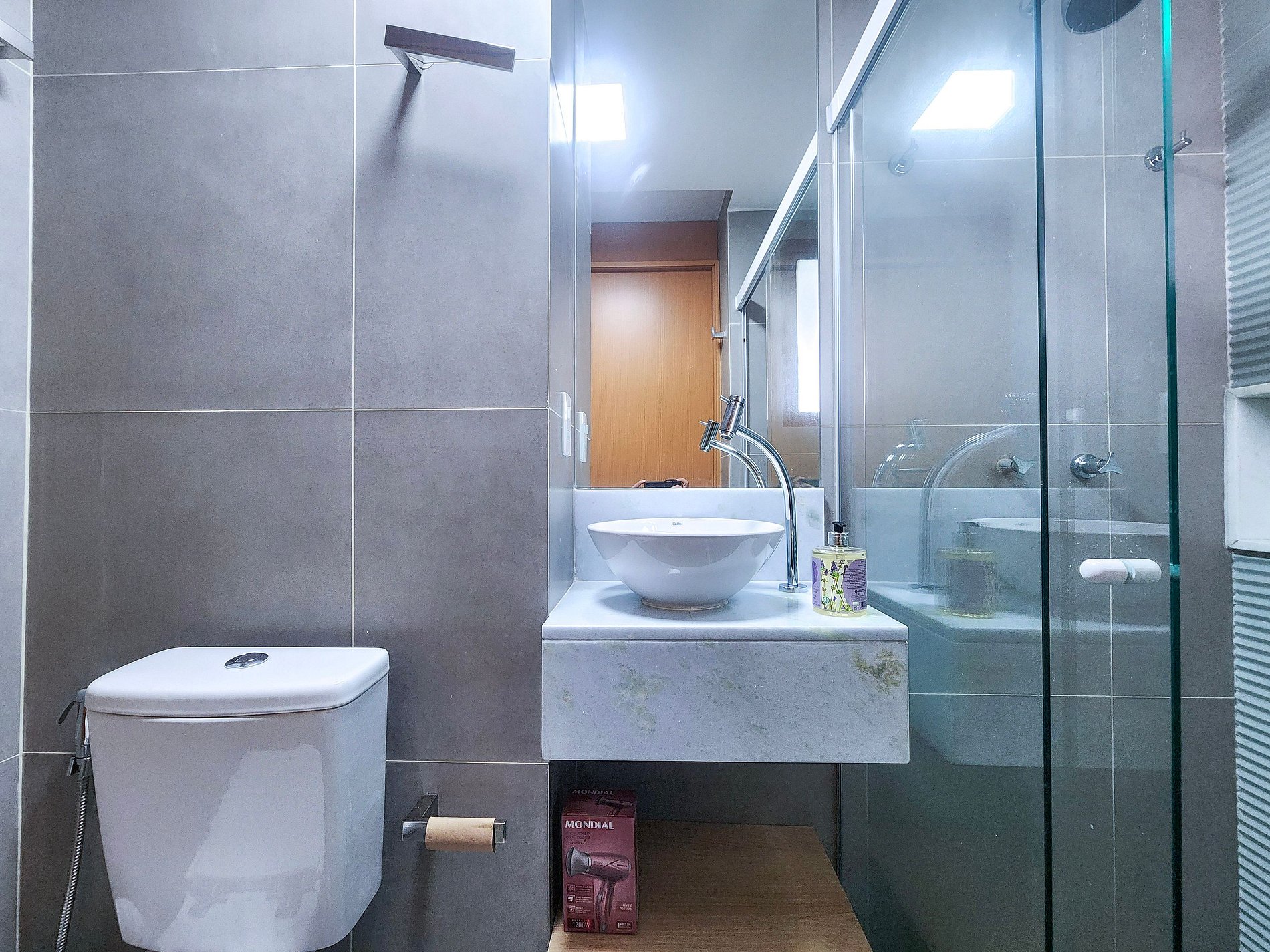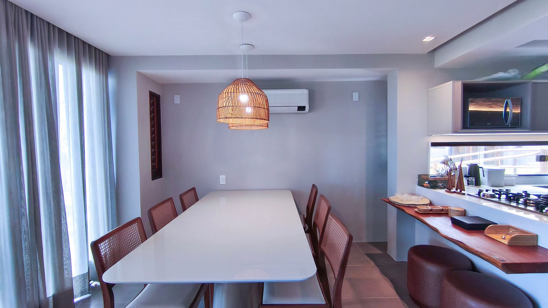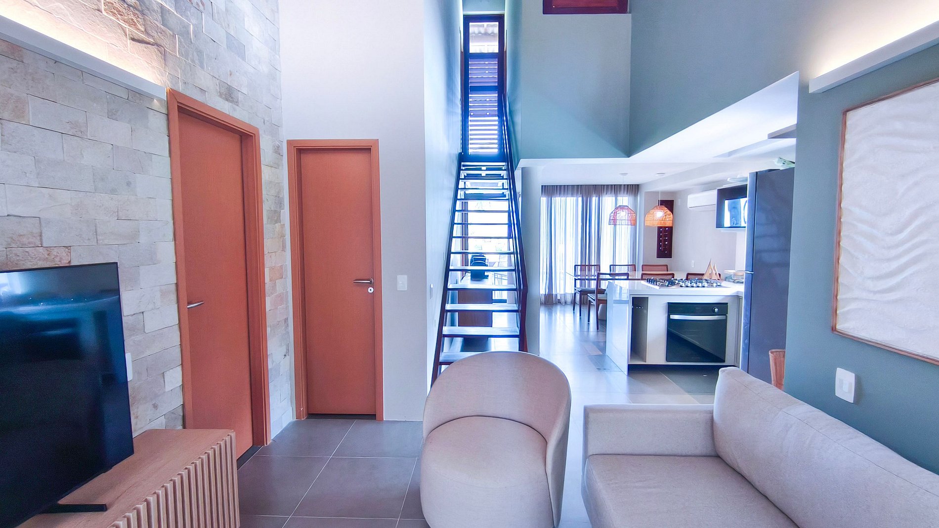 O condomínio oferece opções de lazer e conveniência, como restaurante, loja de conveniência, guarda-sóis e cadeira de praia, mesas de ping-pong, totó e futmesa, materiais esportivos, piscinas adulto e infantil, academia, espaço kids e vagas de estacionamento.