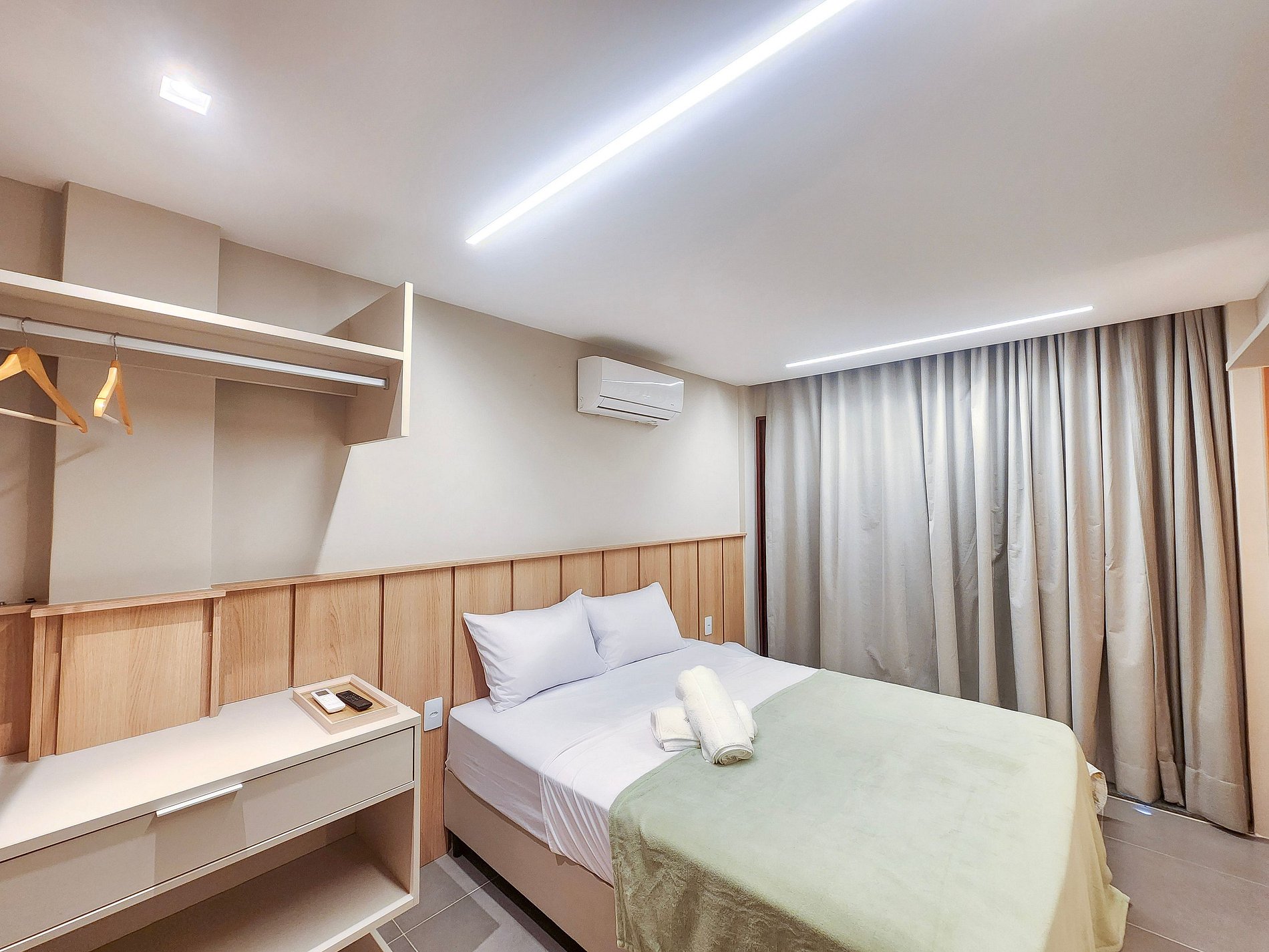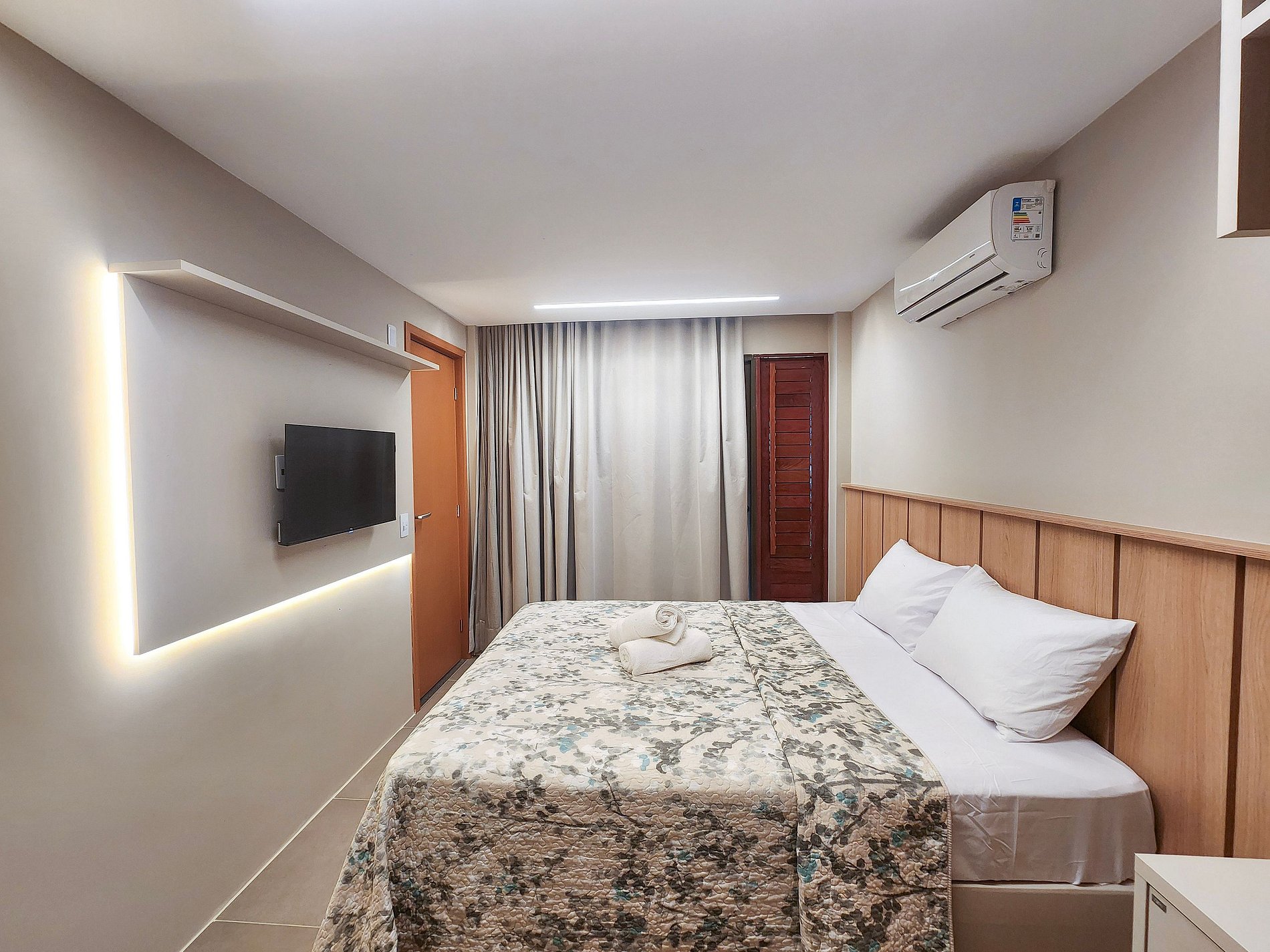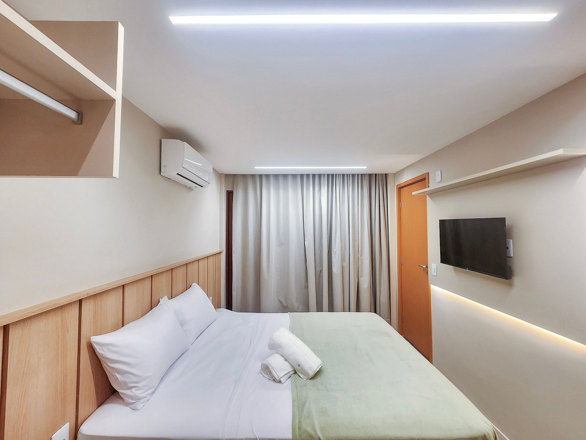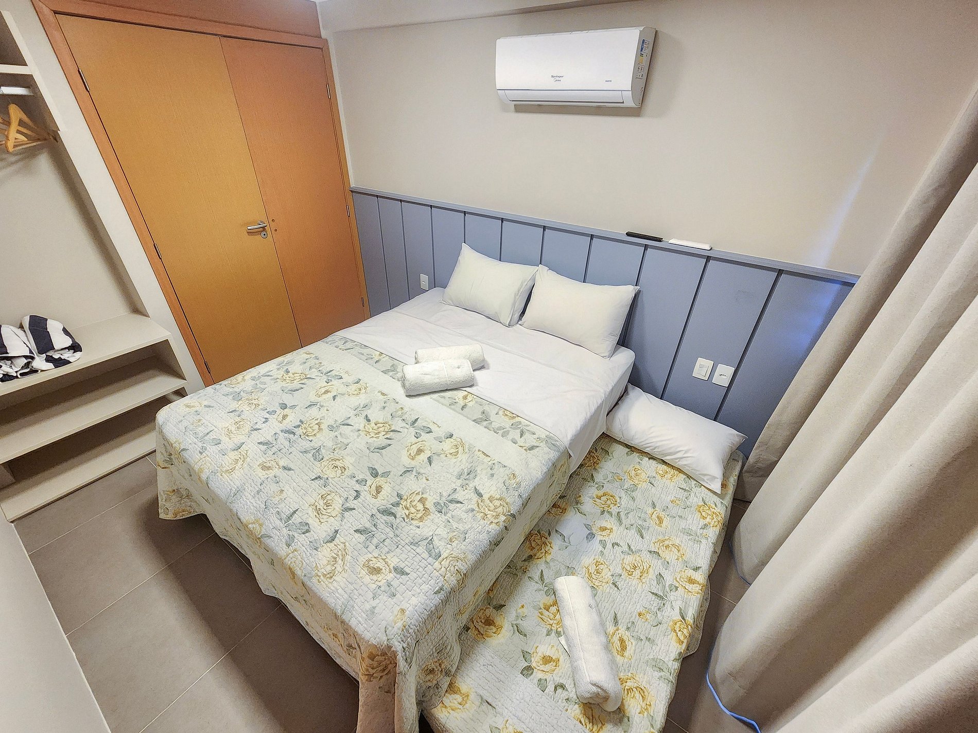 O condomínio oferece opções de lazer e conveniência, como restaurante, loja de conveniência, guarda-sóis e cadeira de praia, mesas de ping-pong, totó e futmesa, materiais esportivos, piscinas adulto e infantil, academia, espaço kids e vagas de estacionamento.