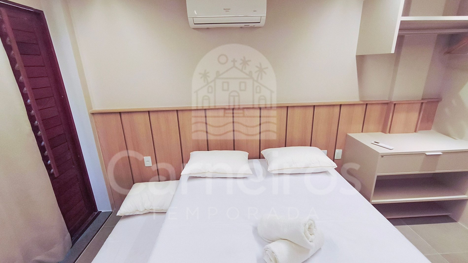 Suíte 01: 01 cama de casal + 01 bicama de solteiro + ar-condicionado