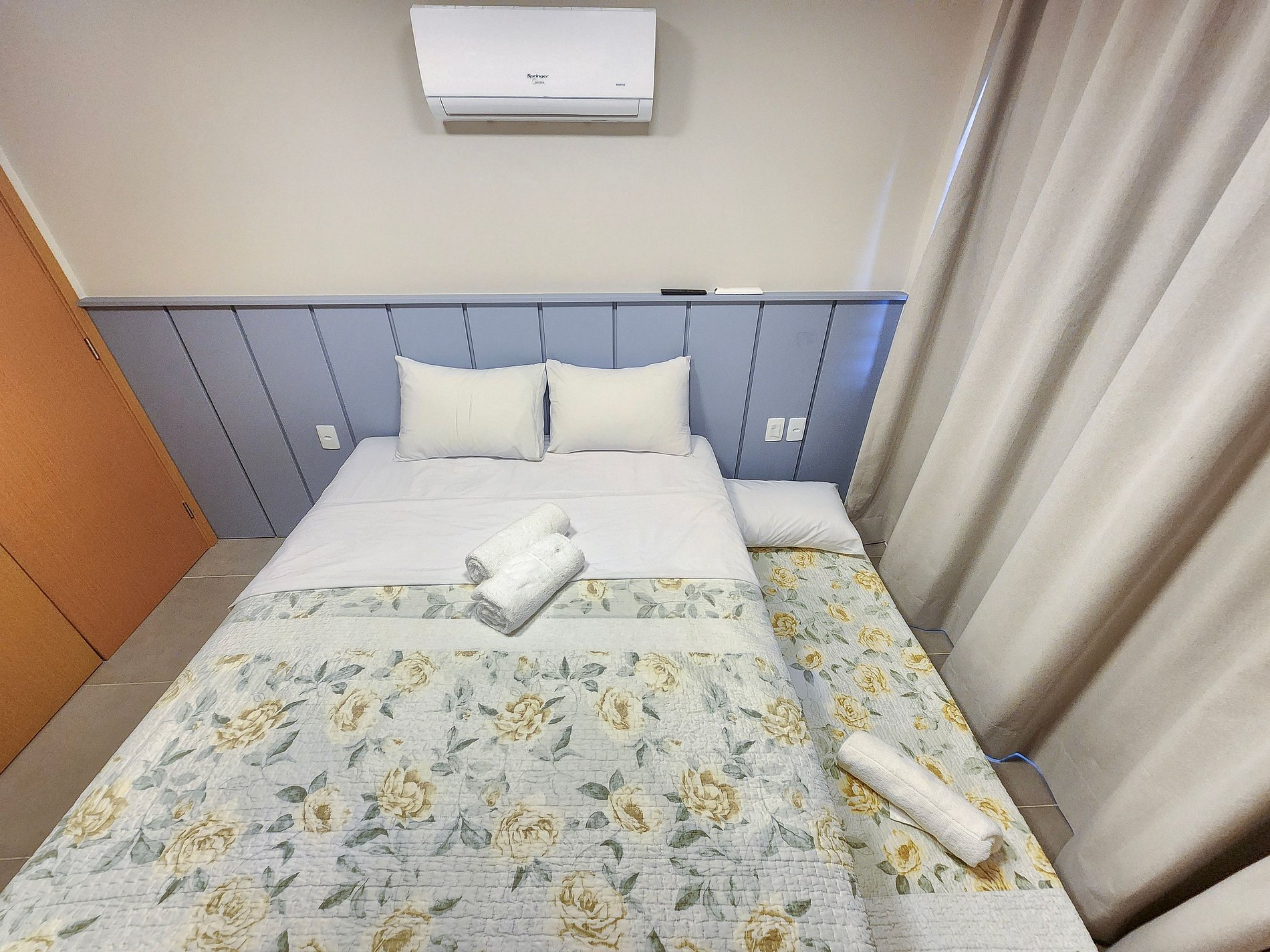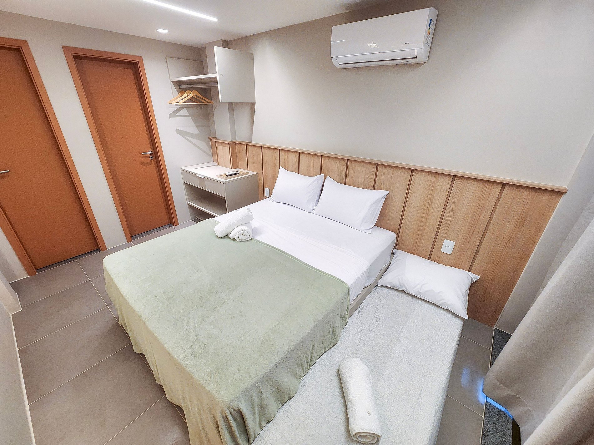 Suíte 01: 01 cama queen + 01 bicama de solteiro + ar-condicionado