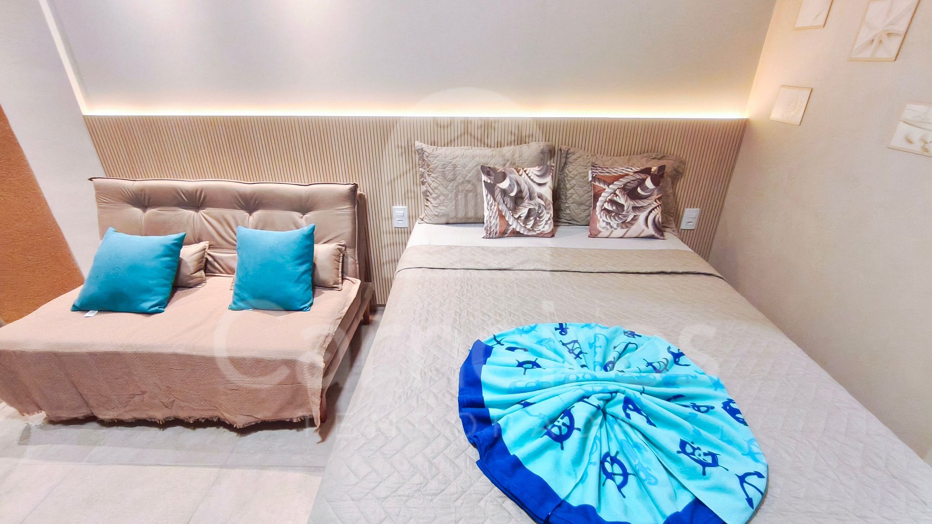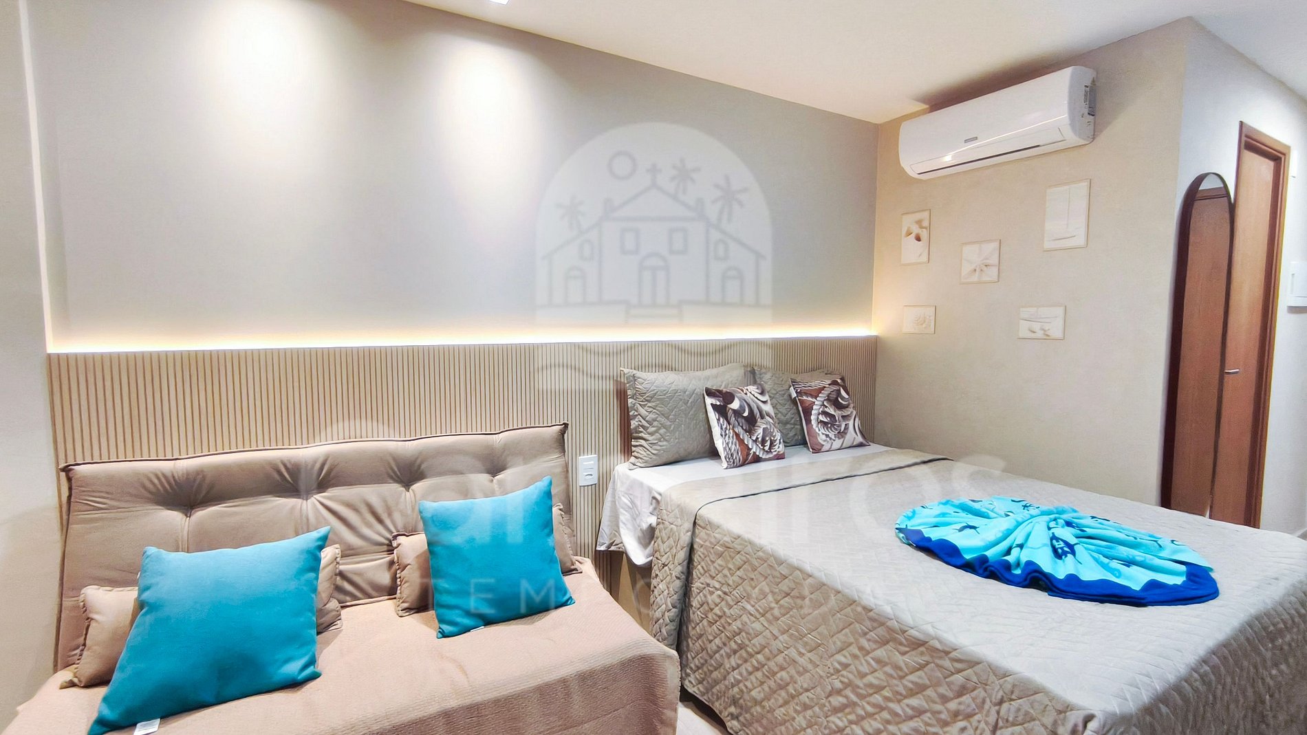 Ideal para casais ou pequenas famílias que buscam conforto, praticidade e uma estadia agradável. Com decoração contemporânea e totalmente climatizado, o studio foi planejado para oferecer conforto e praticidade em qualquer época do ano. O ambiente conta com móveis sob medida que unem funcionalidade e bem-estar. Possui TV, ar-condicionado e banheiro privativo com secador de cabelo. A cozinha é completa e bem equipada, com cooktop, depurador de ar, micro-ondas, geladeira, cafeteira, sanduicheira e air fryer, além de utensílios, louças, panelas e talheres que garantem praticidade no preparo das refeições. Conta também com bancada e espaço para refeições. Para maior comodidade, disponibilizamos itens de praia como cadeiras, guarda-sol e caixa térmica.