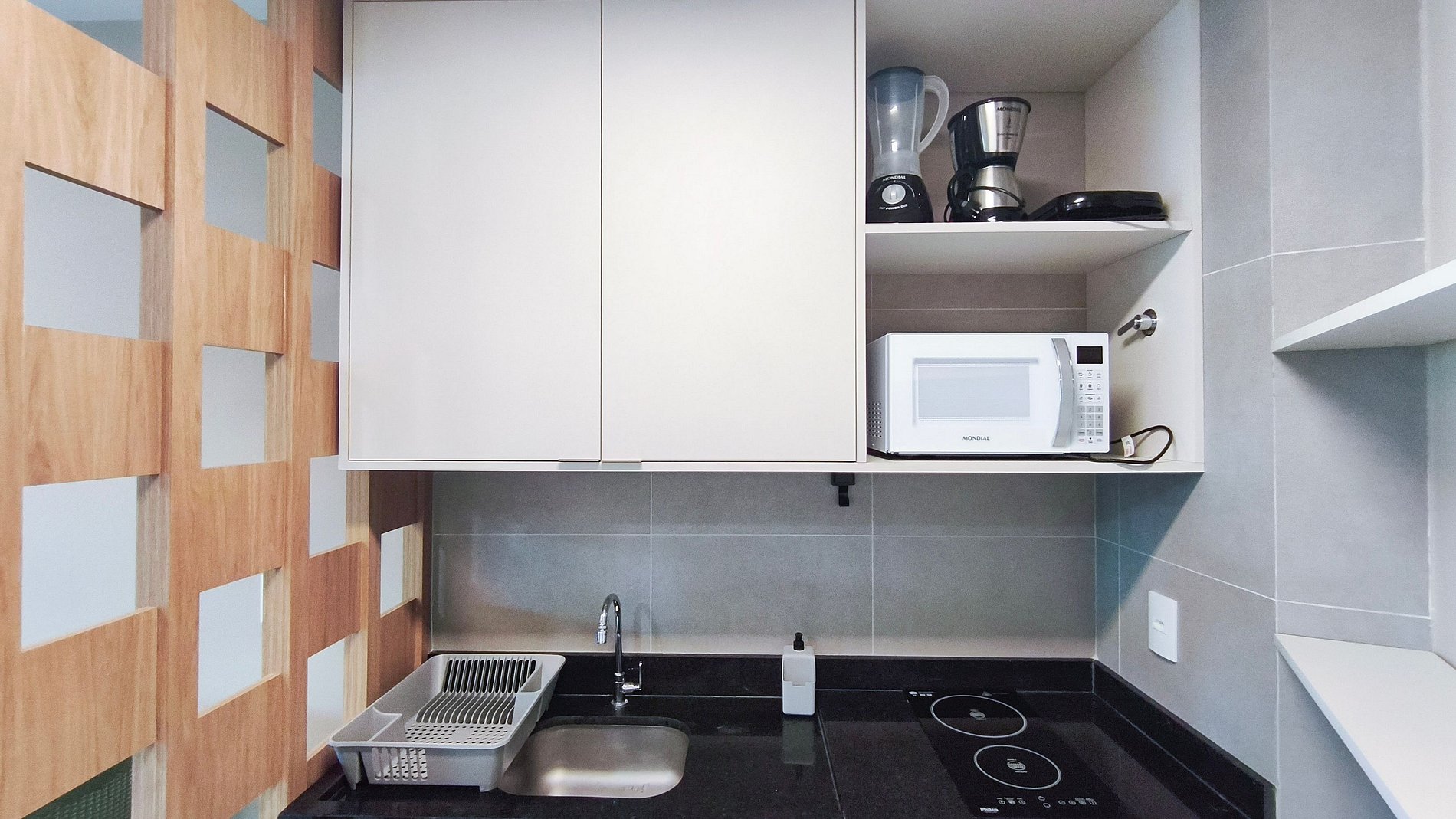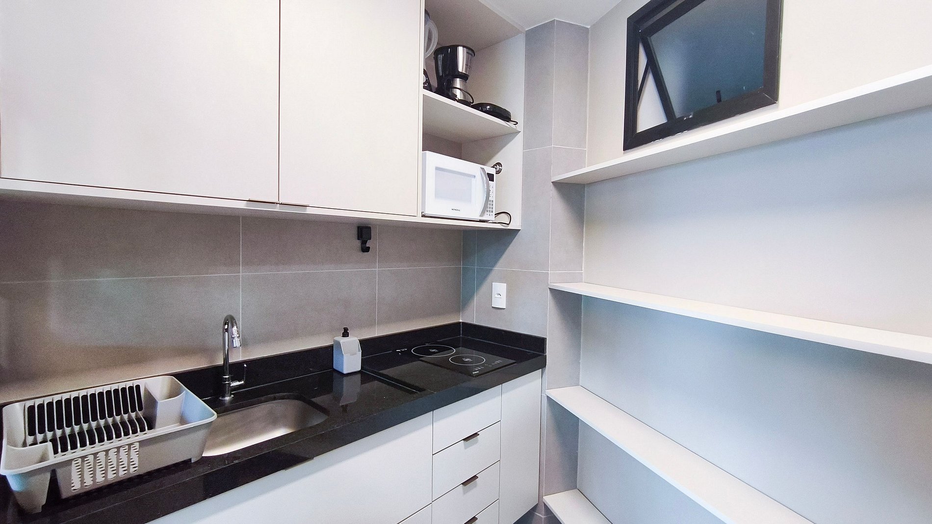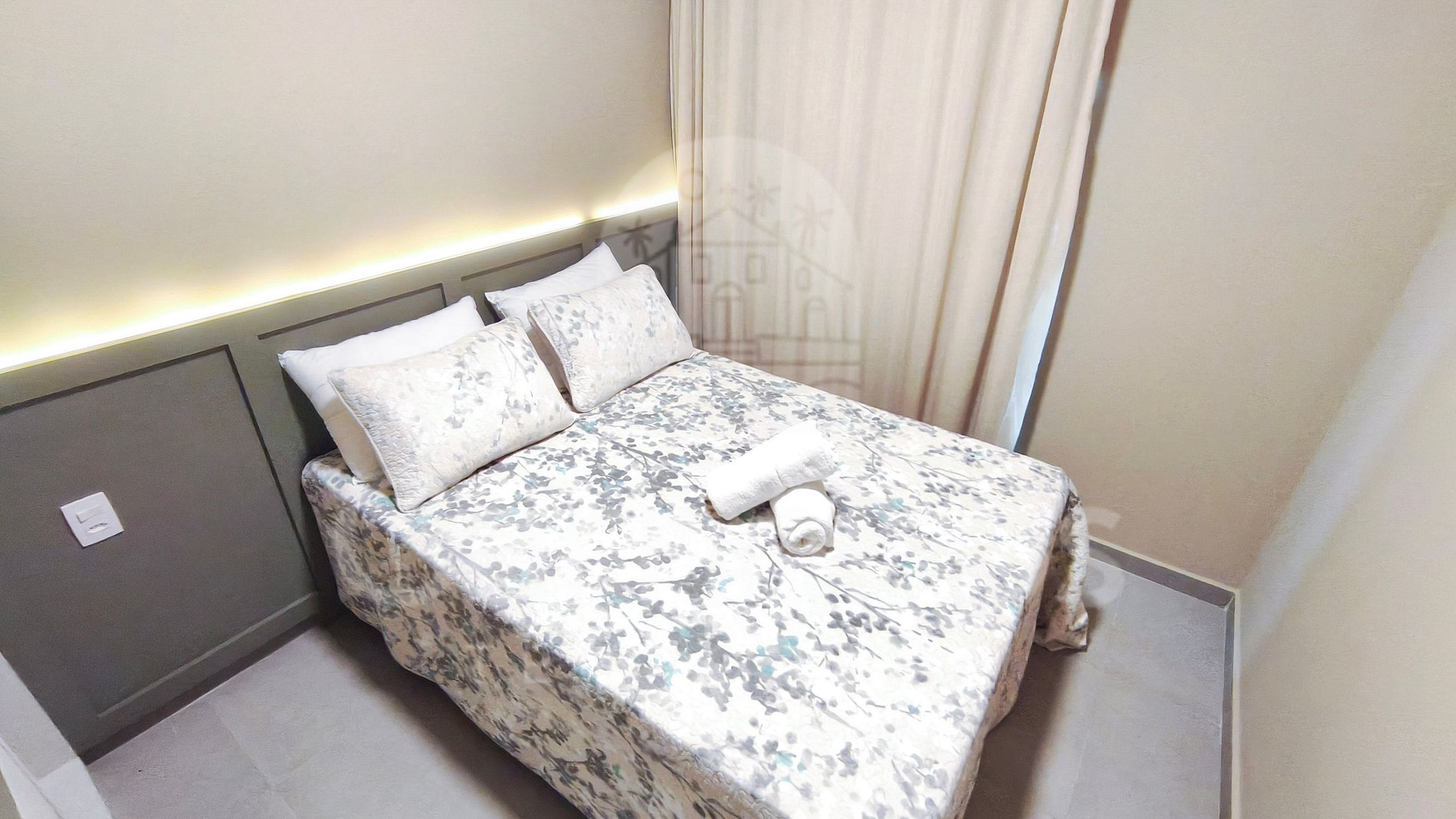 O ambiente é integrado e conta com decoração acolhedora. Dispõe de varanda, quarto, cozinha e banheiro. A cozinha é completa, equipada com geladeira, cooktop, airfryer, cafeteira, liquidificador, sanduicheira, microondas e diversos utensílios. O imóvel oferece TV, ar-condicionado e banheiro completo.
