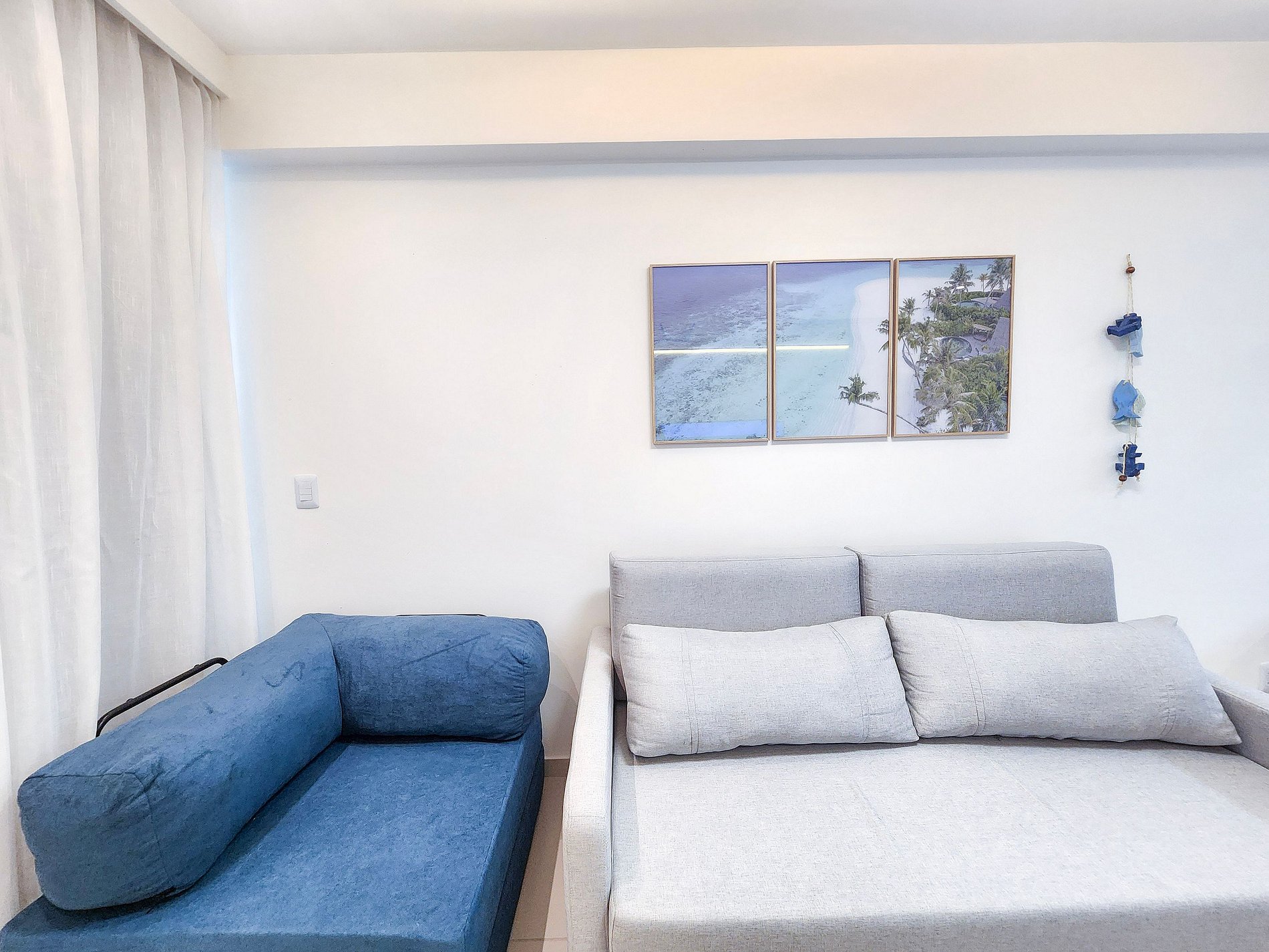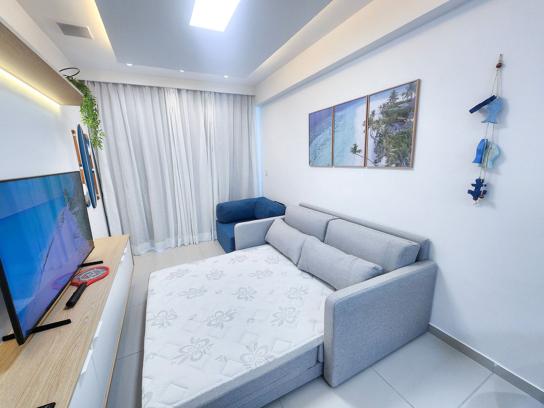 Configuração das camas: 01 cama queen + 01 sofá-cama de casal + 01 sofá-cama solteiro