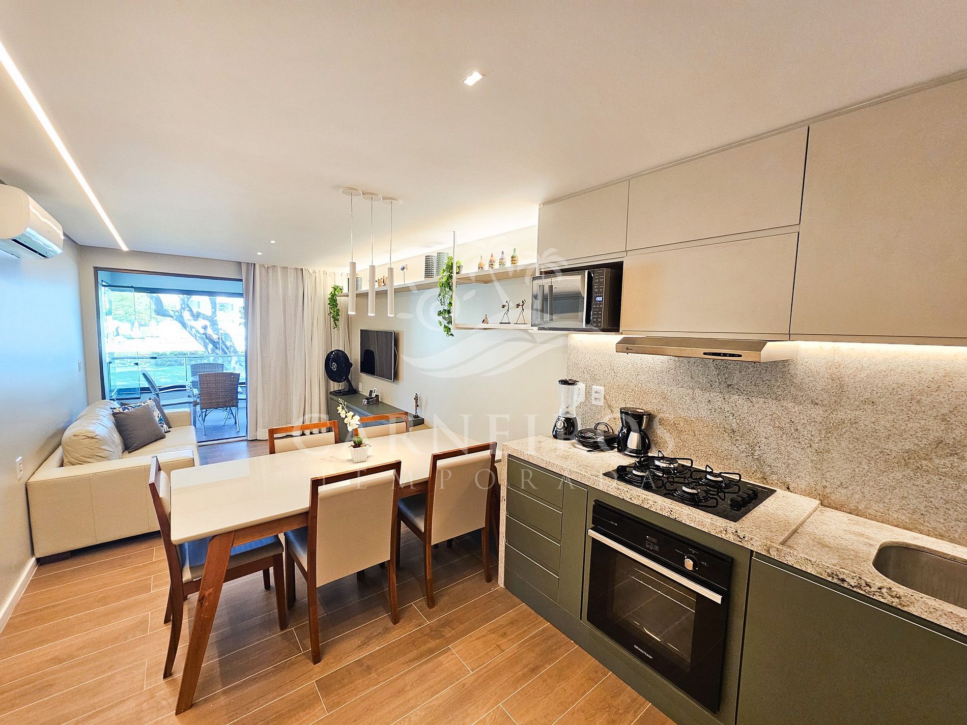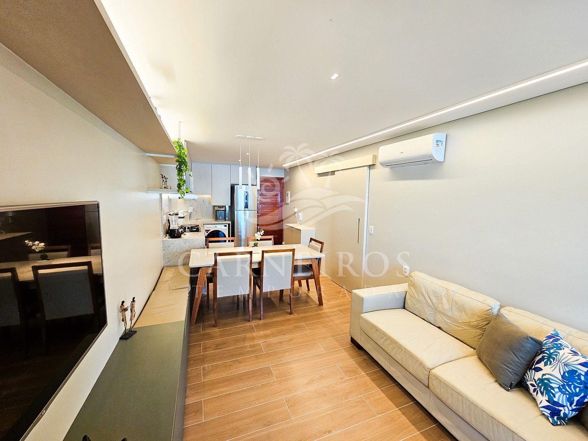 Na sala de estar você encontrará uma decoração agradável, TV a cabo (Sky), sofá e ar-condicionado. A cozinha é completa e possui diversas comodidades como louça, copos, panelas, talheres, sanduicheira, cafeteira elétrica, airfryer, micro-ondas, fogão de 04 bocas, gelágua, geladeira, liquidificador, cooler e diversos utensílios, além de sala de jantar com mesa e 4 cadeiras. O flat possui 02 banheiros completos (box, armário, ducha higiênica e chuveiro elétrico).