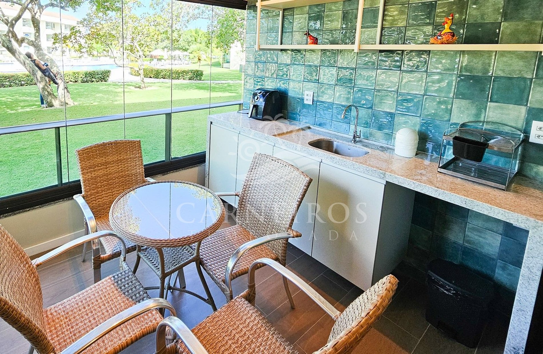 ✹ O flat se encontra no térreo do prédio com vista para piscina, possui também uma linda varanda com quatro cadeiras e mesa. ✹