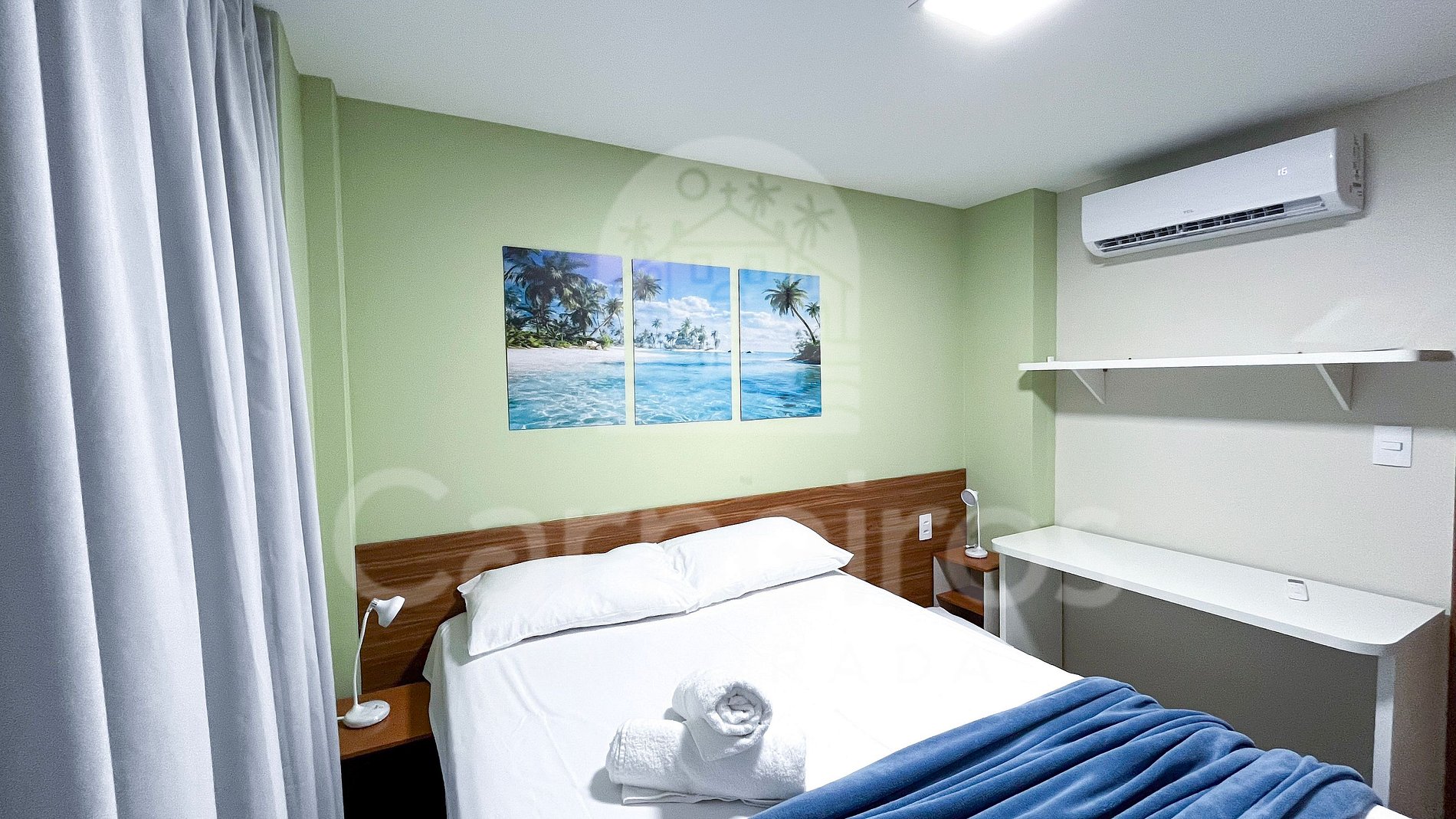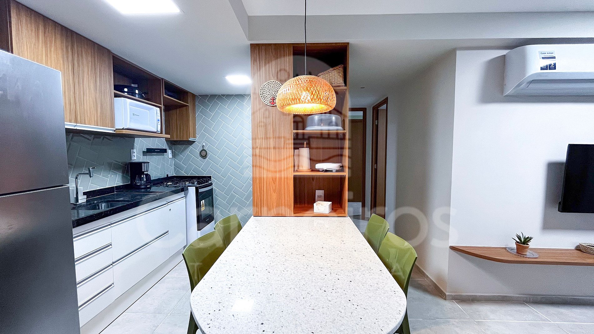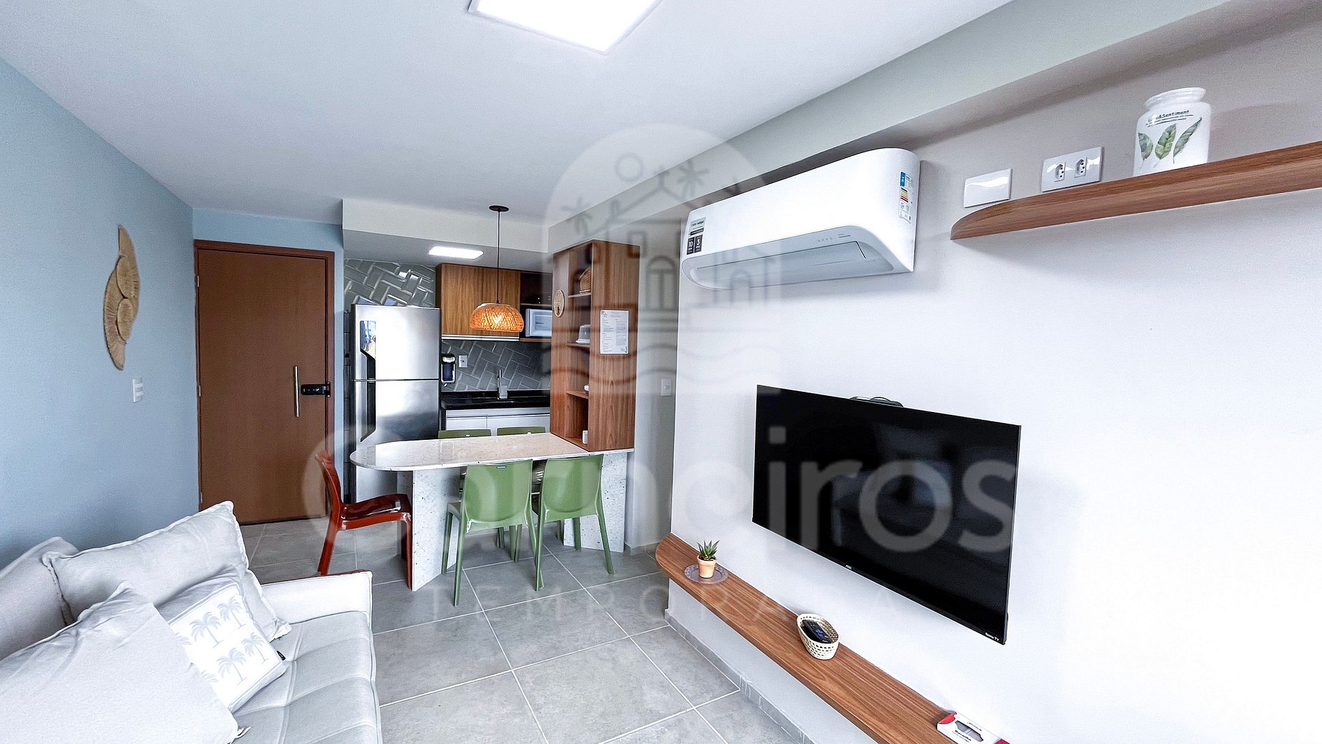 Studio com decoração contemporânea, totalmente climatizado, garantindo conforto em qualquer época do ano. O ambiente é cuidadosamente planejado, com móveis sob medida, unindo praticidade e bem-estar. Dispõe de TV e ar-condicionado, ideal para momentos de descanso e lazer.