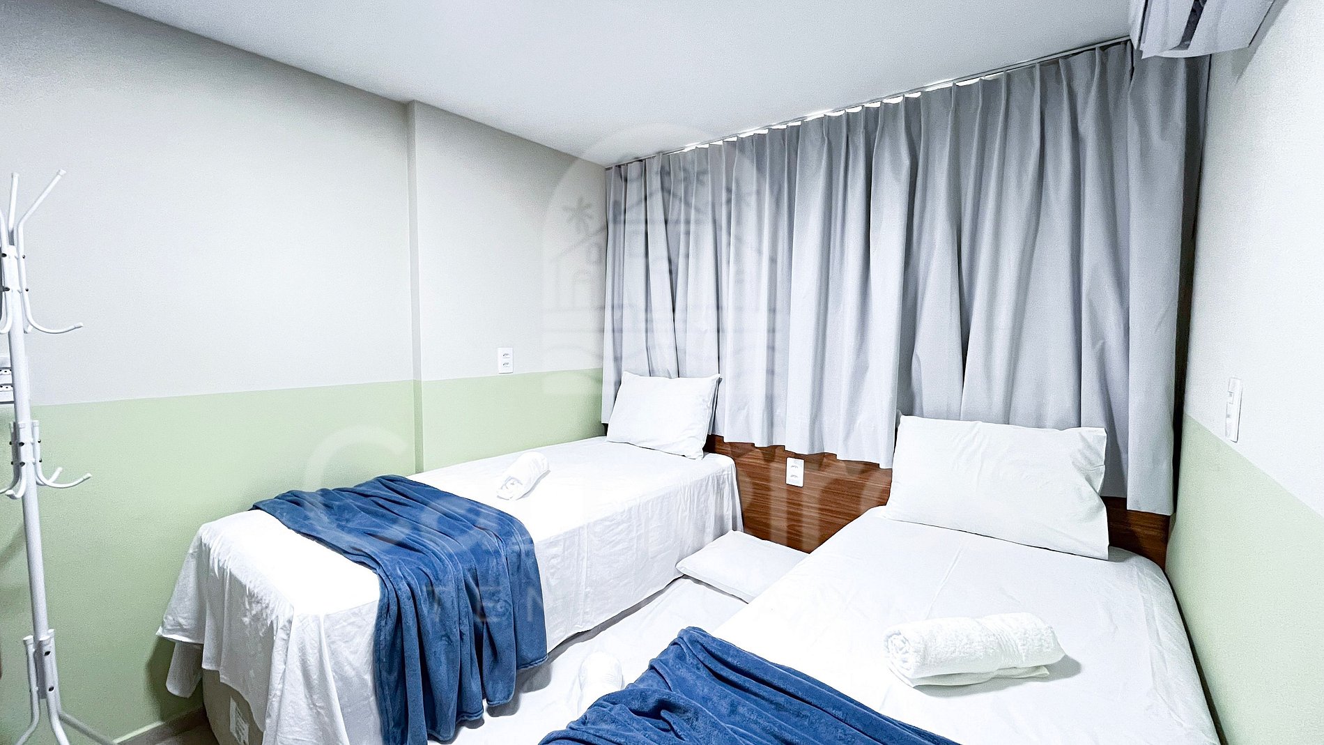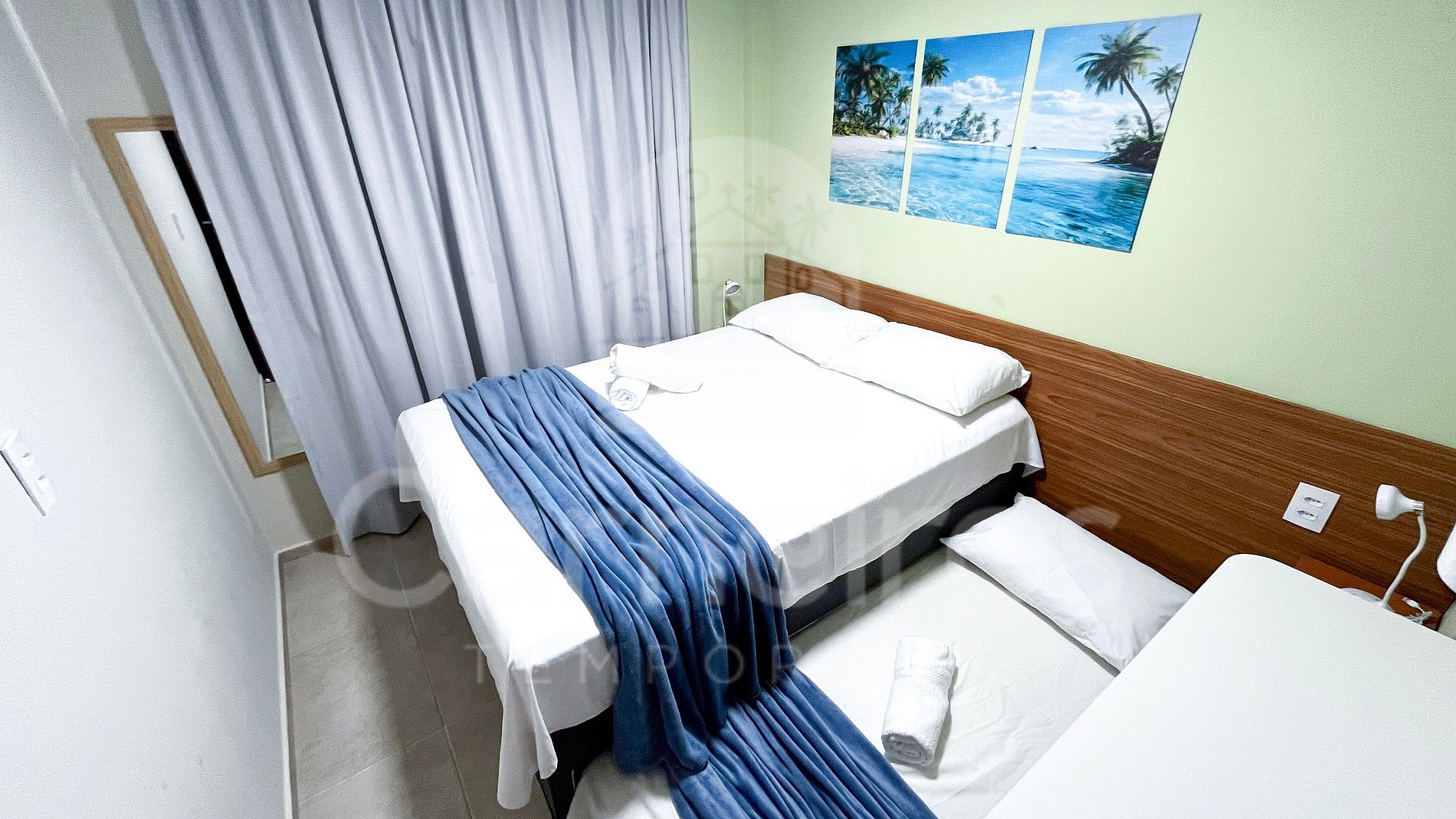 Acomoda até 8 pessoas: 02 camas de casal + 02 camas solteiro + 02 bicamas de solteiro