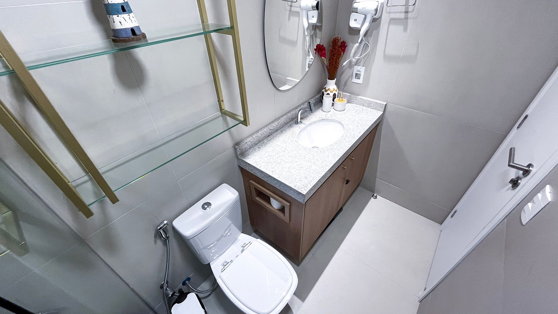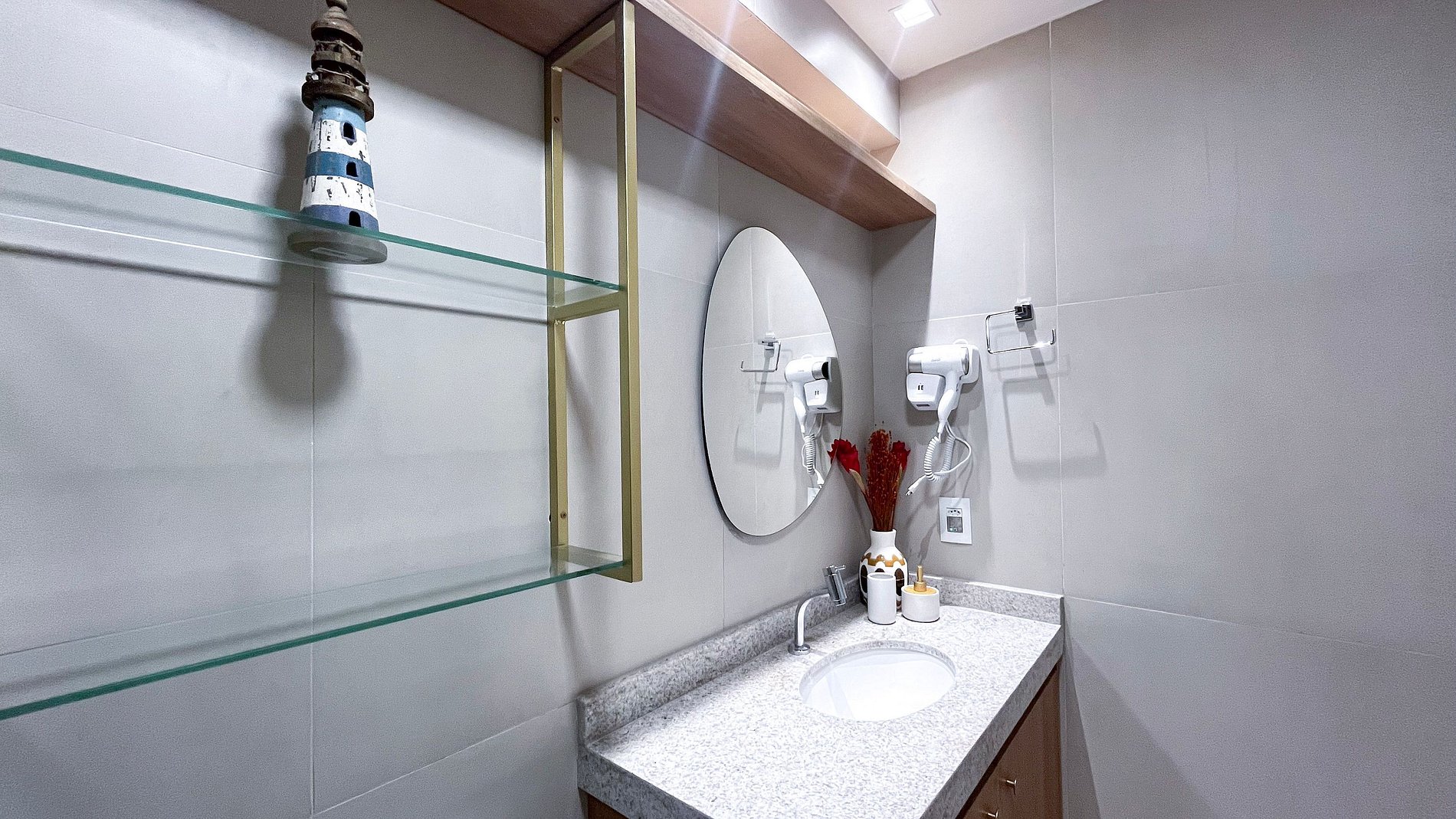 Banheiro - Banheiro completo equipado com secador de cabelo.