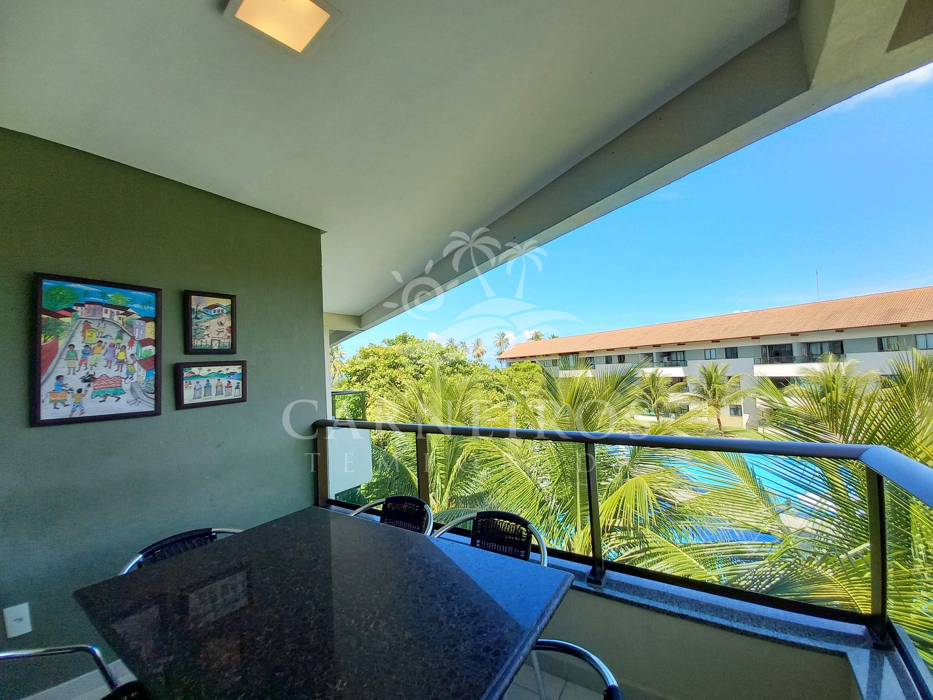 ✹O apartamento fica no segundo andar do prédio, com vista para a piscina, e também tem uma linda varanda com quatro cadeiras e uma mesa.✹