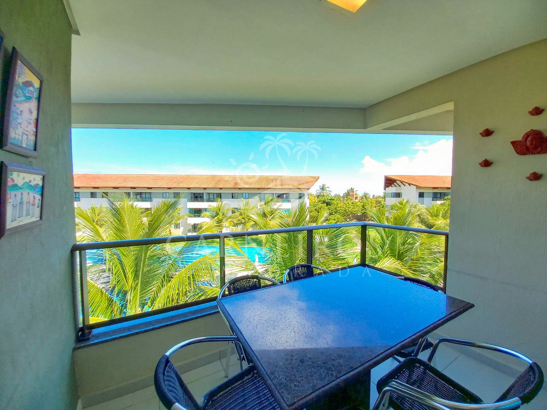 ✹O apartamento fica no segundo andar do prédio, com vista para a piscina, e também tem uma linda varanda com quatro cadeiras e uma mesa.✹