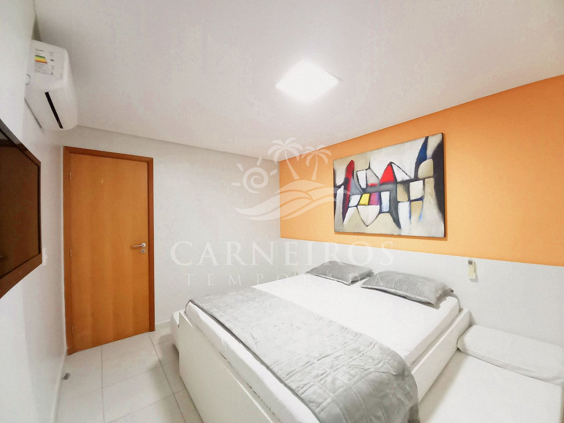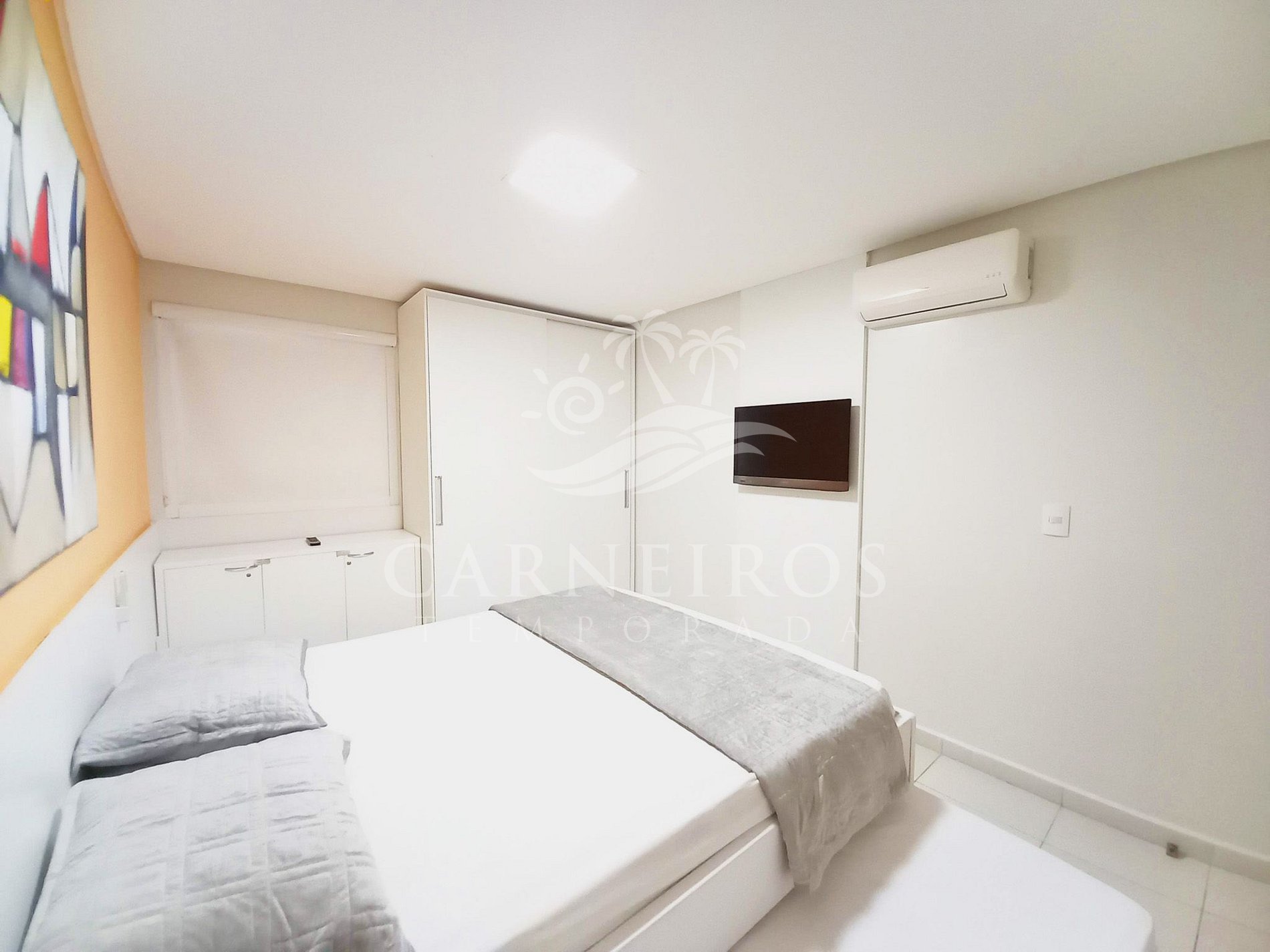 - Quarto 01: 1 cama de casal + 02 colchões futón, armários, TV e ar-condicionado.