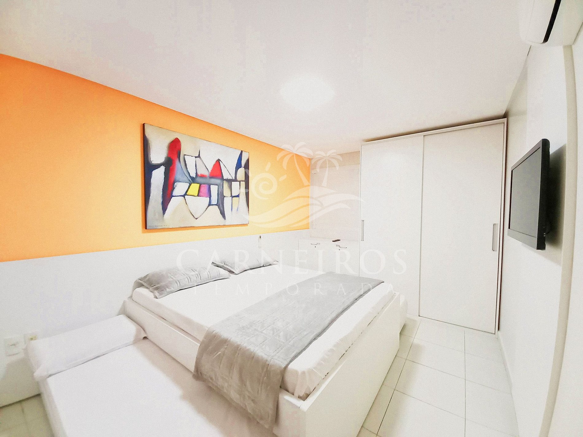 - Quarto 01: 1 cama de casal + 02 colchões futón, armários, TV e ar-condicionado.