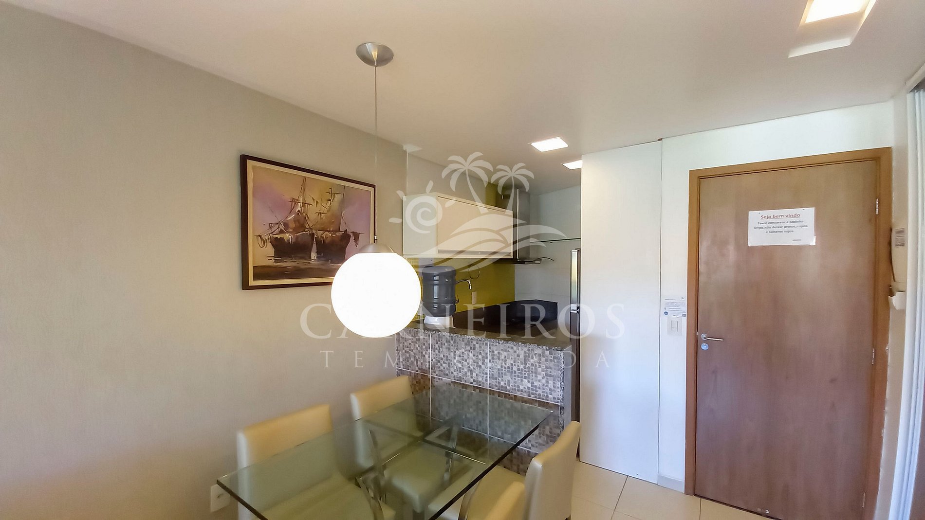 Na sala de estar você encontrará uma decoração agradável, TV, sofá cama de casal e ar-condicionado. A cozinha é completa e possui itens como louça, copos, panelas, talheres, sanduicheira, micro-ondas, fogão, geladeira, liquidificador e diversos utensílios, além de sala de jantar com mesa e 4 cadeiras. O flat possui 01 banheiro completo (box, armário, ducha higiênica, chuveiro elétrico).