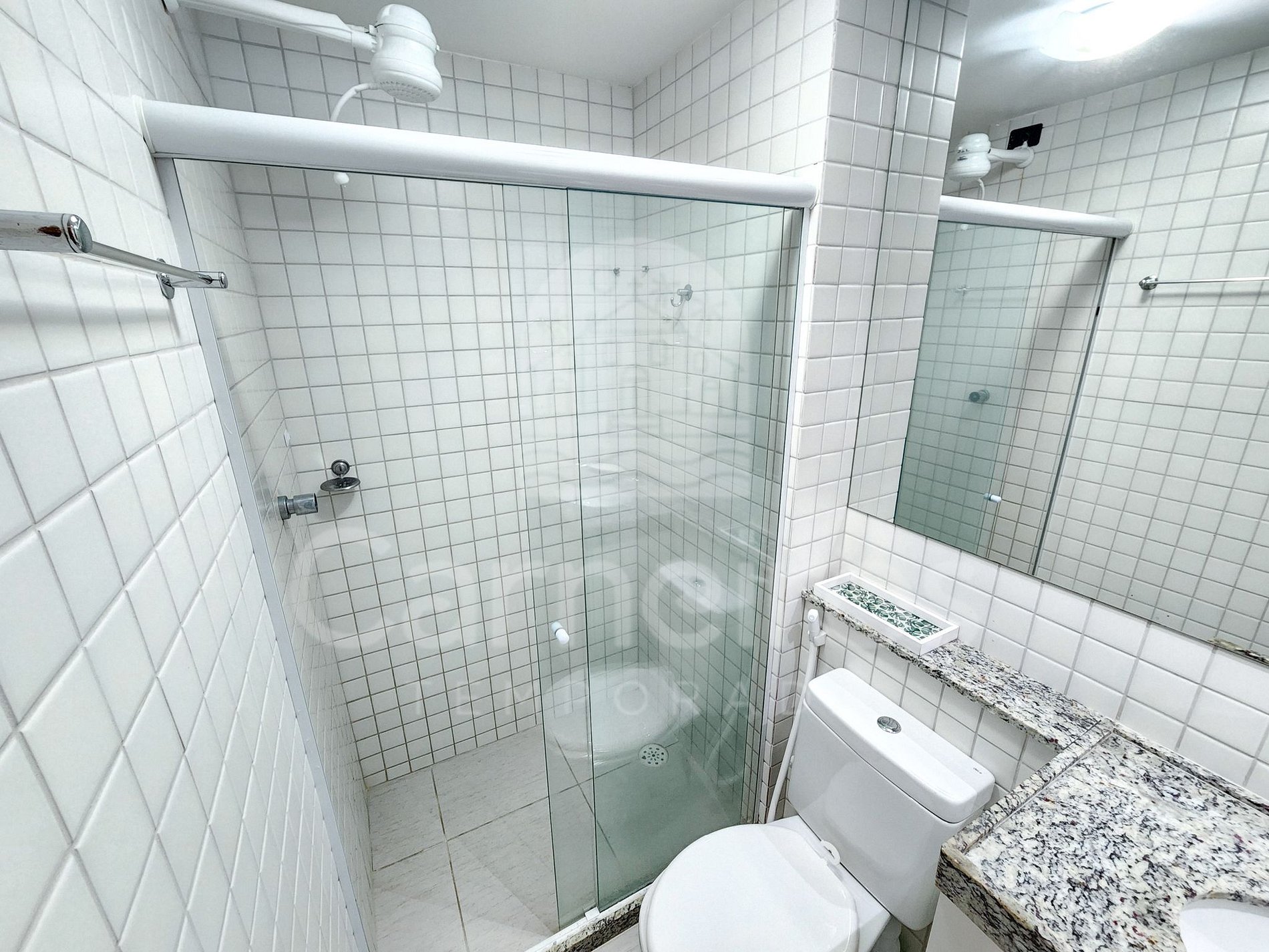 A sala tem uma agradável decoração com TV, sofá-cama de casal e mesa de jantar com 3 cadeiras. A cozinha é completa e equipada com os principais utensílios como geladeira, micro-ondas, fogão, forno, liquidificador, sanduicheira, torradeira, cafeteira, airfryer, churrasqueira elétrica, cervejeira e outros. Possui também 1 banheiro social com box, armário e chuveiro quente, além do banheiro da suíte.