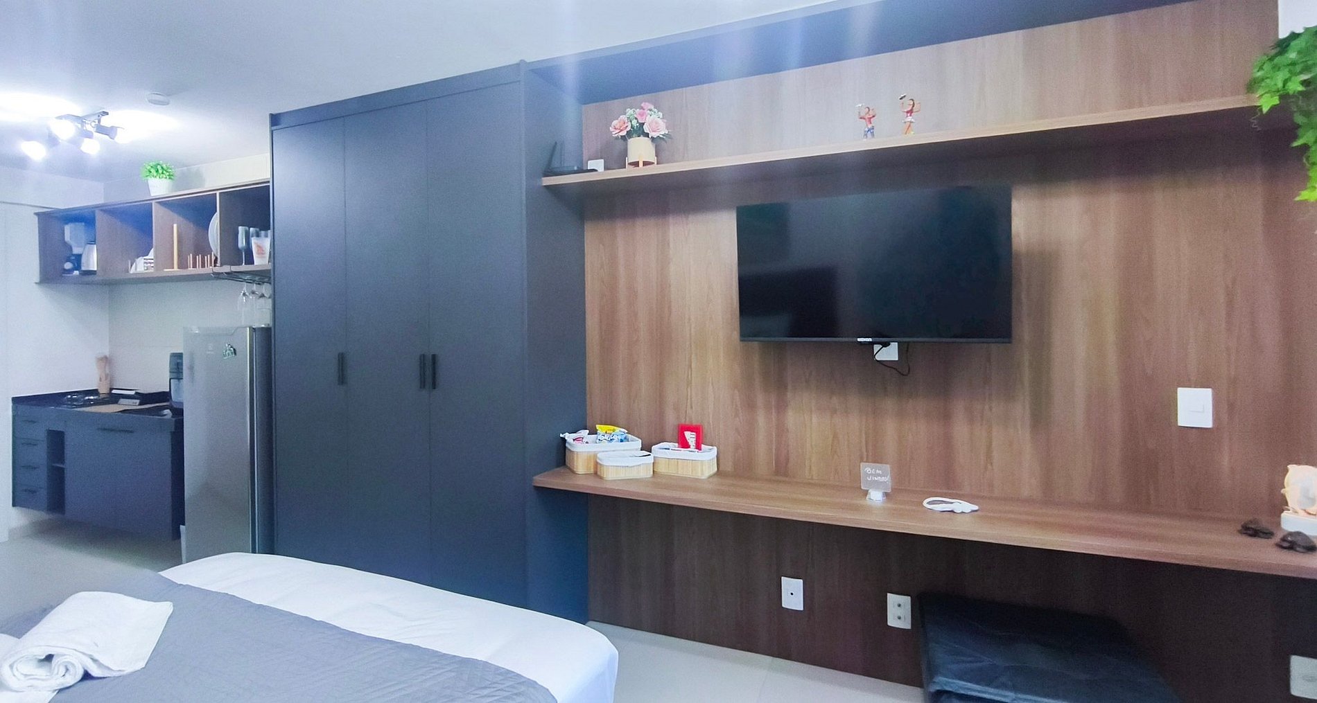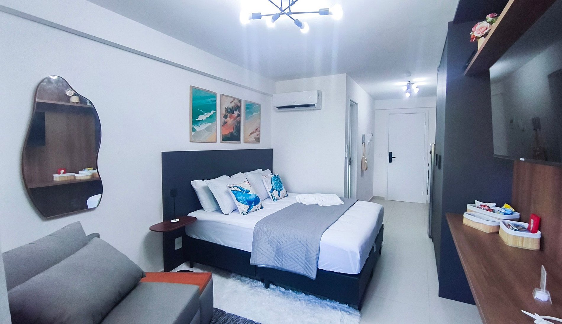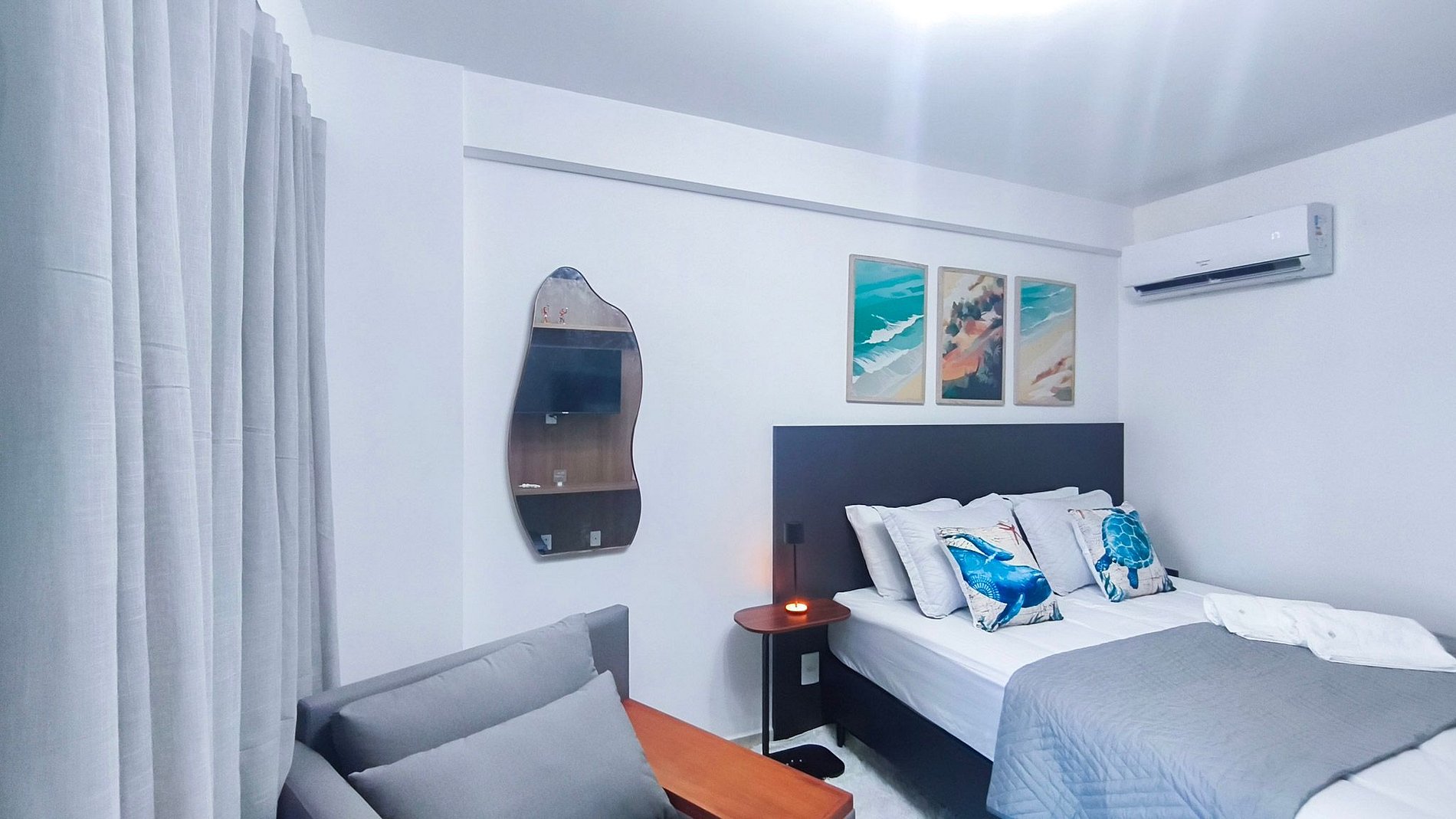 Acomodação para 3 hóspedes. Dispõe de 1 cama de casal, 1 sofá-cama, ar-condicionado, TV e Wi-Fi.