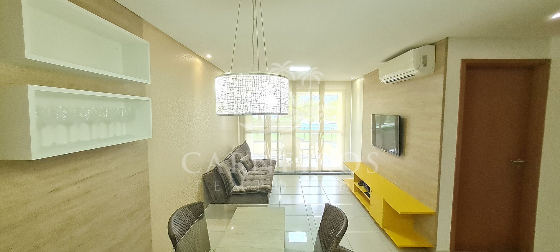 Na sala de estar você encontrará TV, sofá, ar-condicionado e uma decoração agradável. A cozinha é completa e possui diversas comodidades como louça, copos, panelas, talheres, geladeira, micro-ondas, sanduicheira, cafeteira elétrica, fogão cooktop 04 bocas, gelágua, liquidificador e outros utensílios. A acomodação dispões também de sala de jantar com mesa e 4 cadeiras e 02 banheiros completos (box, armário, ducha higiênica, chuveiro elétrico).