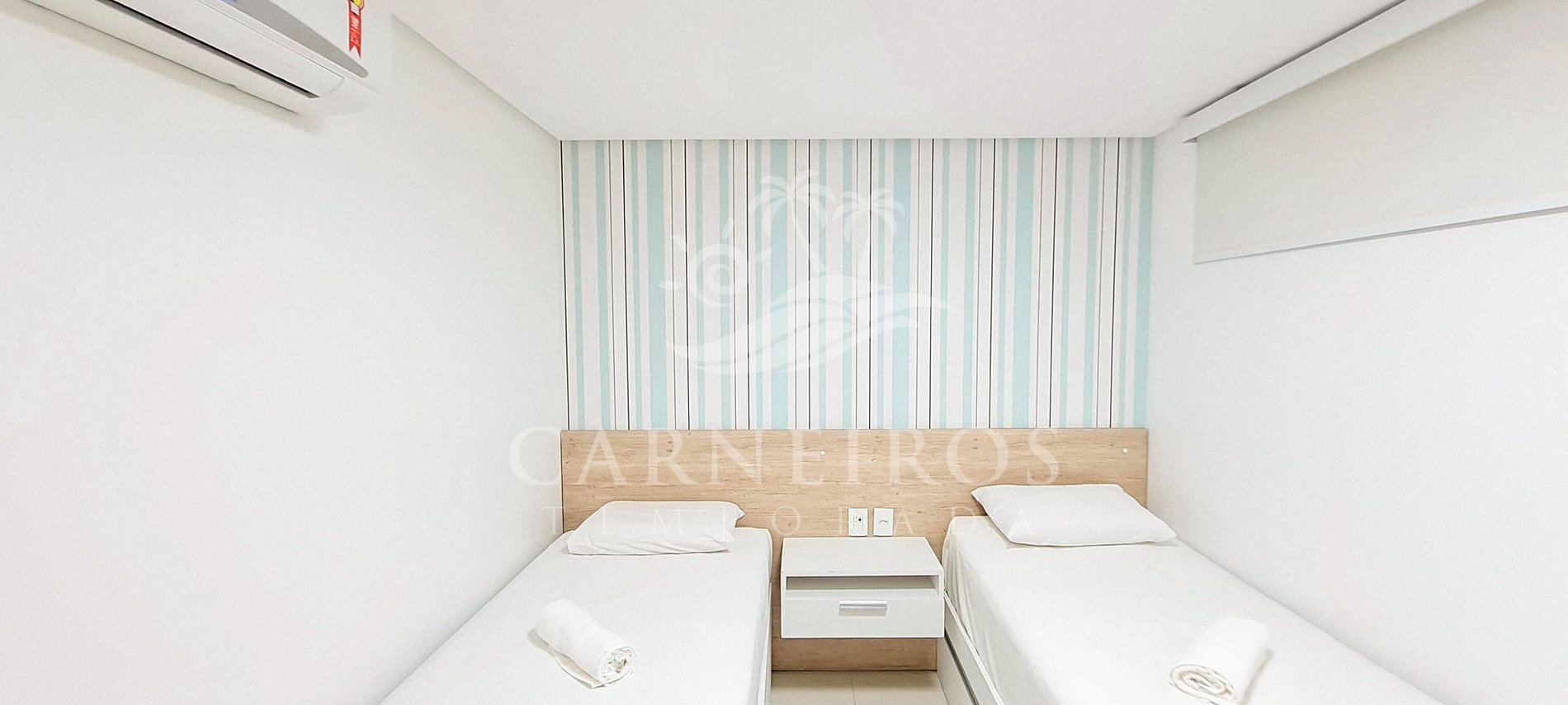- Quarto 01: 2 camas de solteiro + 01 bicama (acomoda até 03 pessoas), armários e ar-condicionado;
