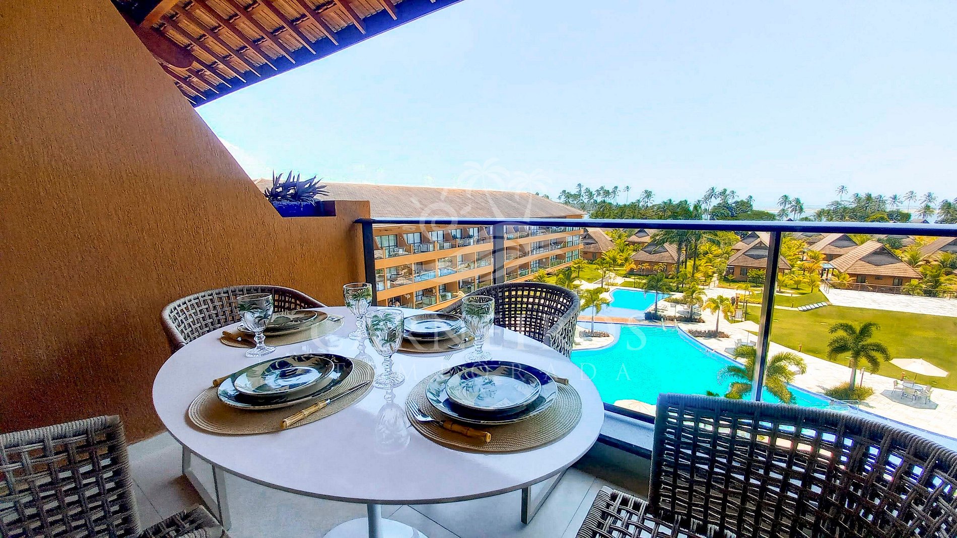 ✹ O flat se localiza no segundo andar, possui uma linda varanda com vista para a piscina e praia ✹