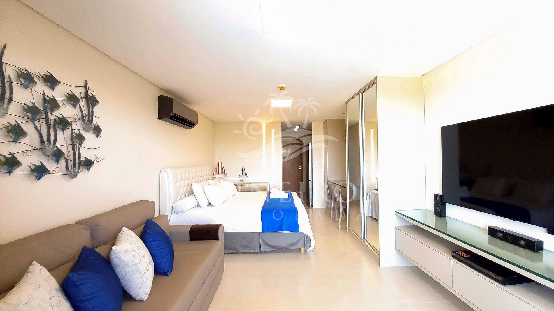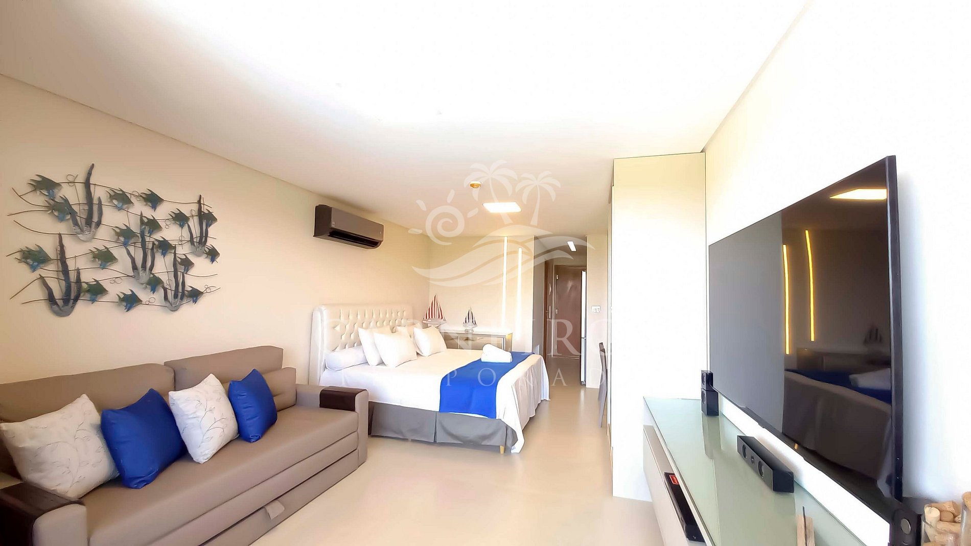 - Sala de estar: sofá-cama de casal + 01 cama King e ar-condicionado Split.