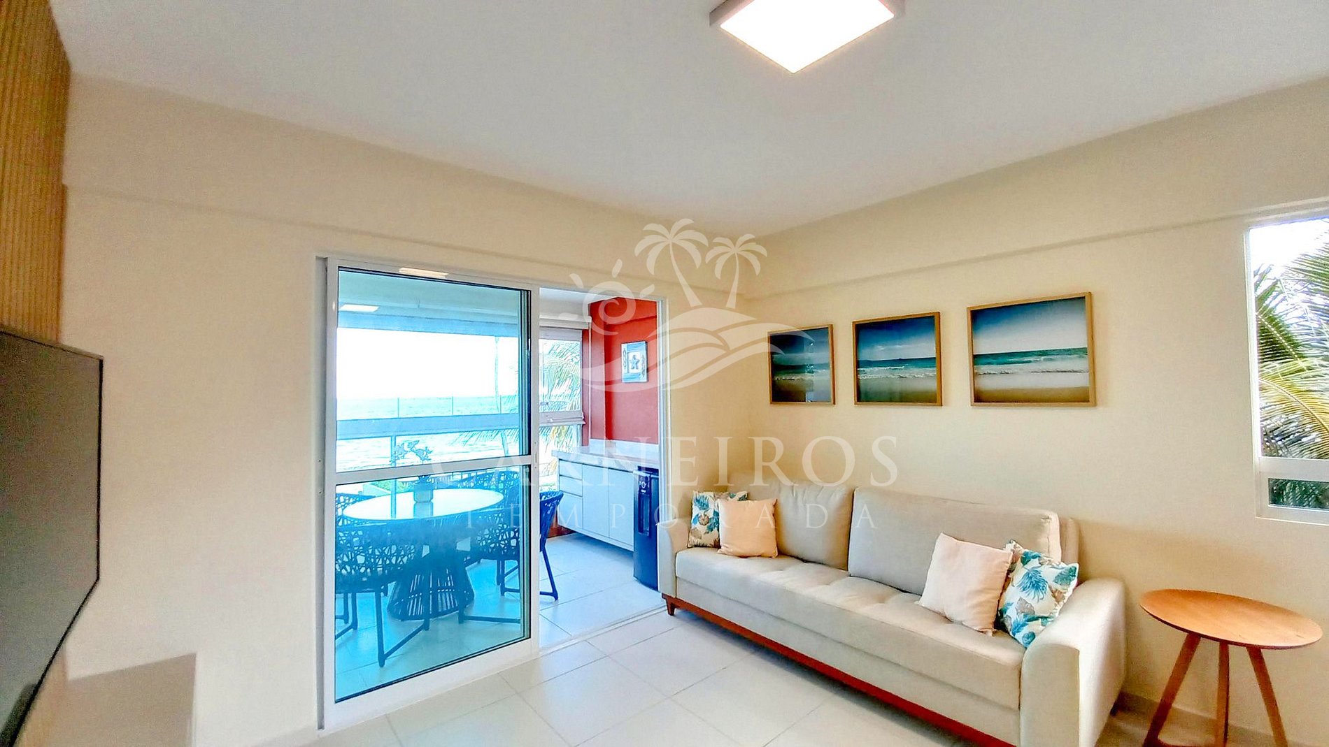 ✹ Apartamento possui varanda coberta com vista privilegiada para o mar, mesa, 4 cadeiras e cervejeira ✹