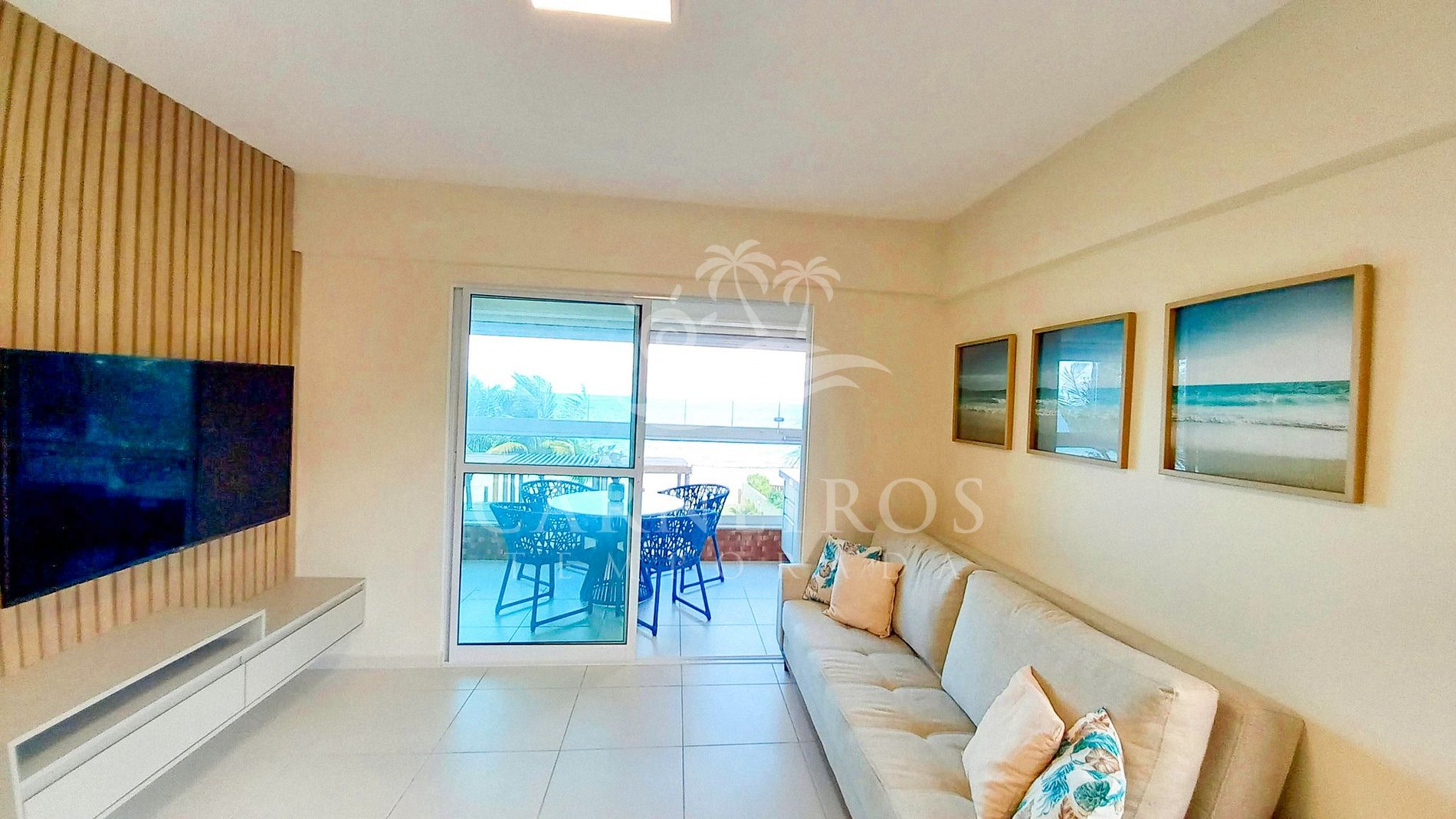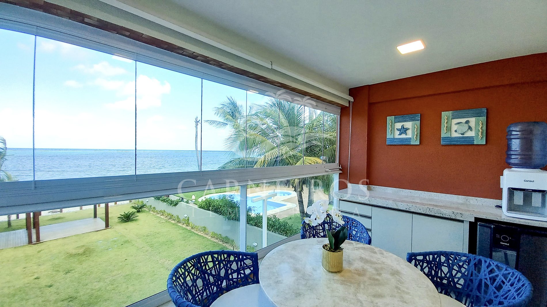 ✹ Apartamento possui varanda coberta com vista privilegiada para o mar, mesa, 4 cadeiras e cervejeira ✹