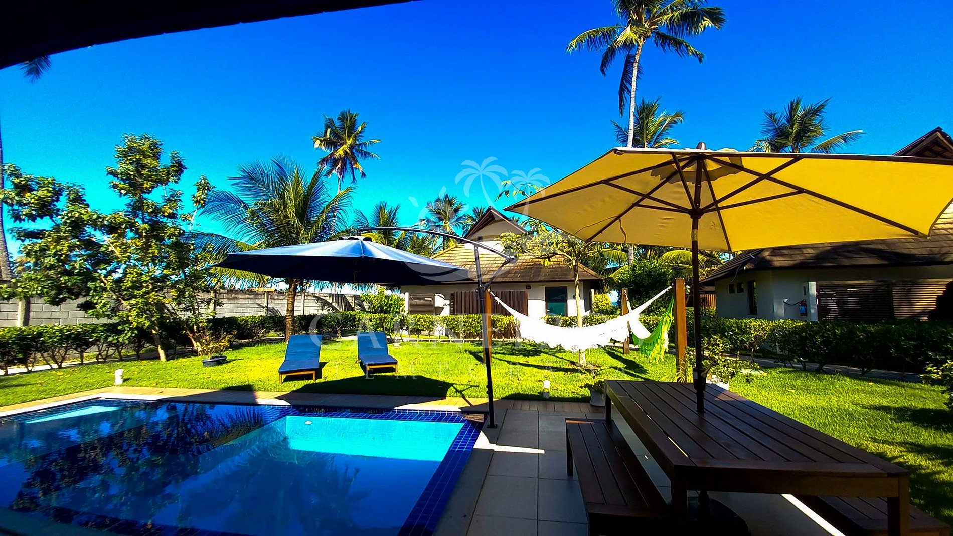 ✹O Bangalô encontra-se na área beira mar com vista para piscina privativa e possui uma linda área de estar equipada com churrasqueira, rede, espreguiçadeira e mais ✹
