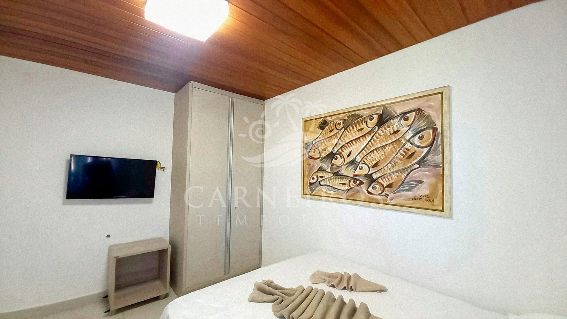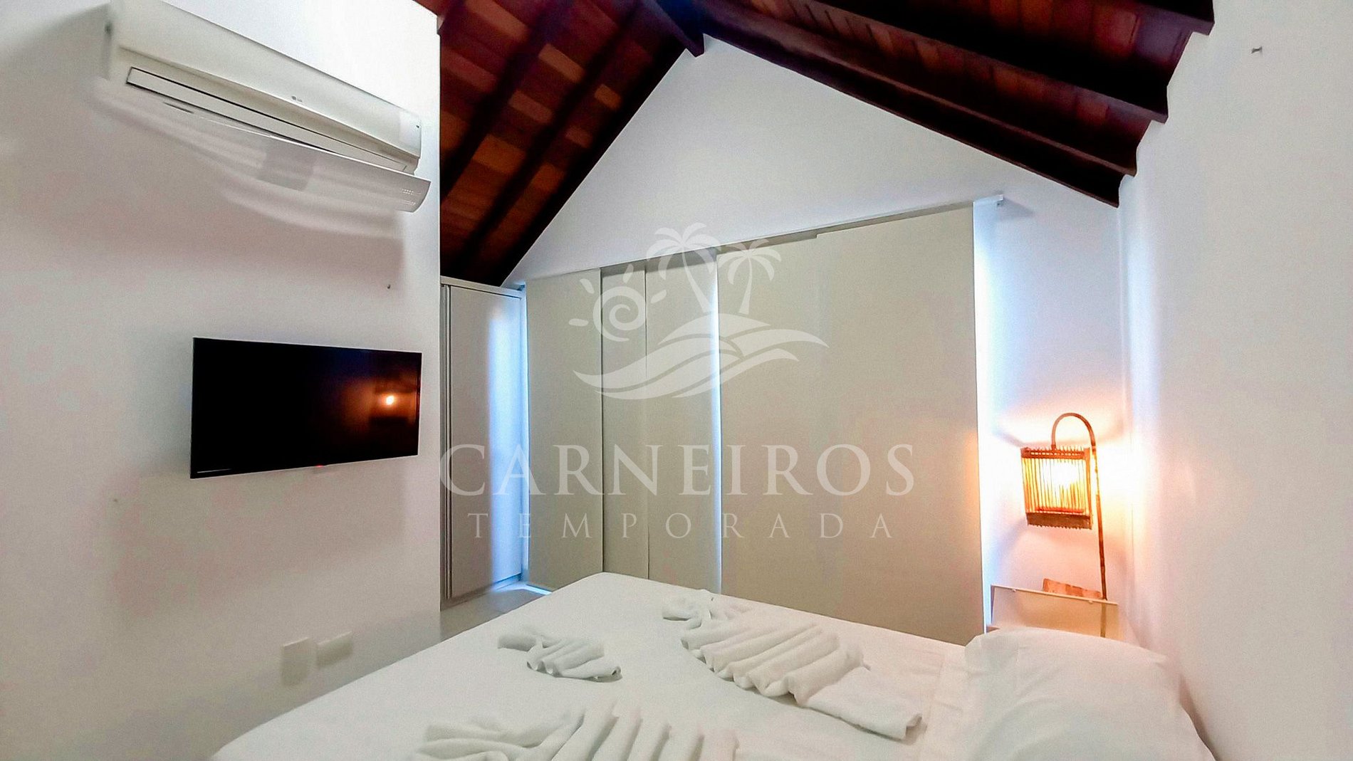 - Suíte 01: 1 cama de casal Queen, TV, armário, ar-condicionado e banheiro;