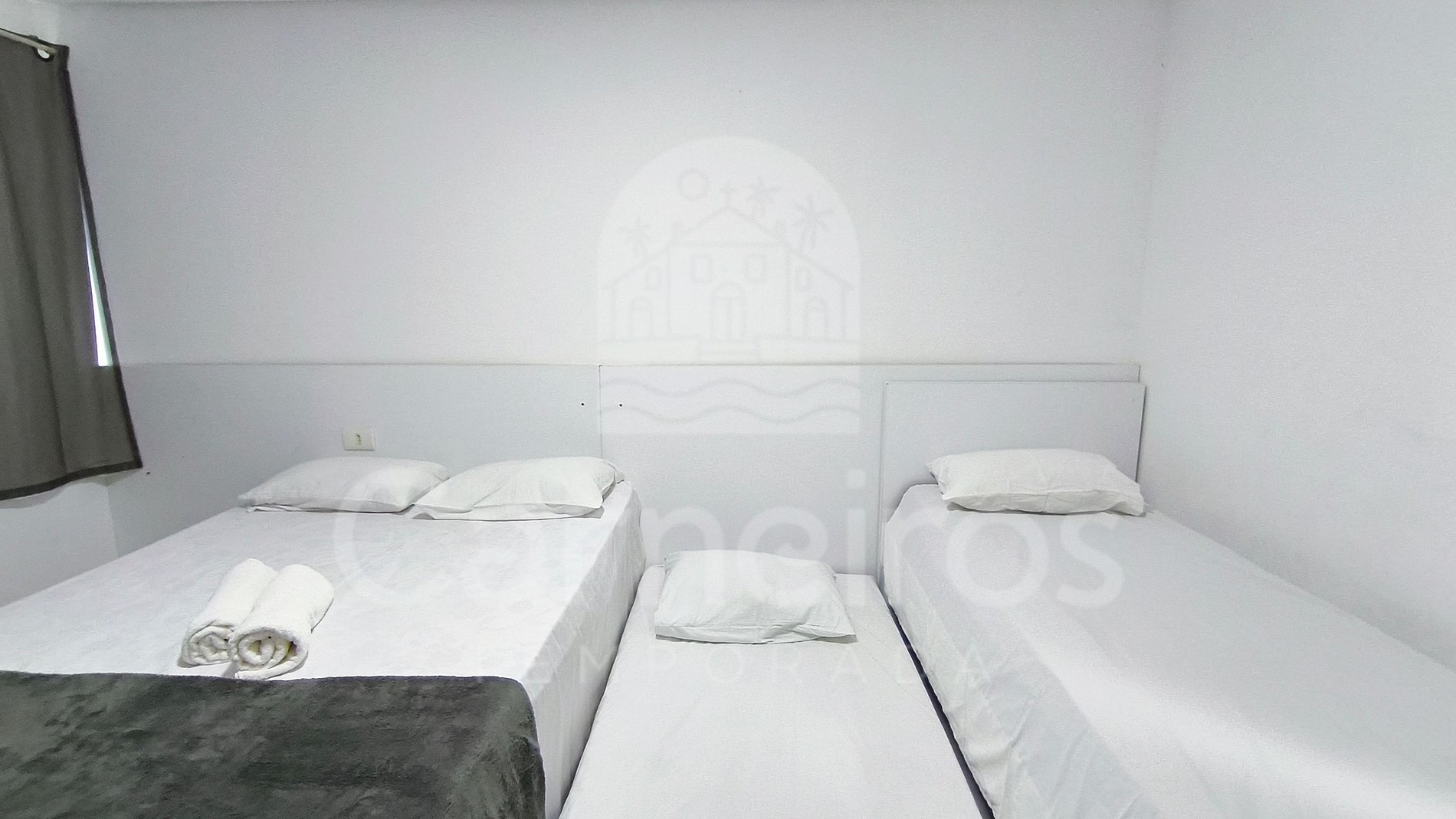 - Quarto: 1 cama de casal + 01 cama de solteiro e 01 bicama, TV e ar-condicionado.