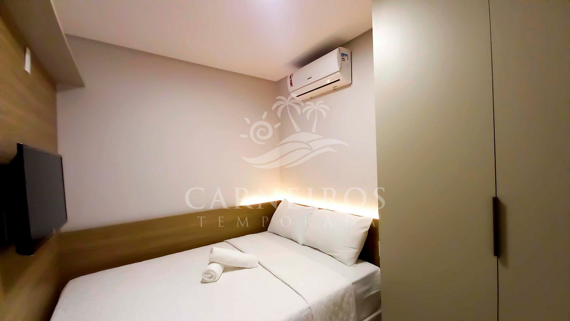 - Quarto 02: Cama box de casal, TV, armário, ar-condicionado;