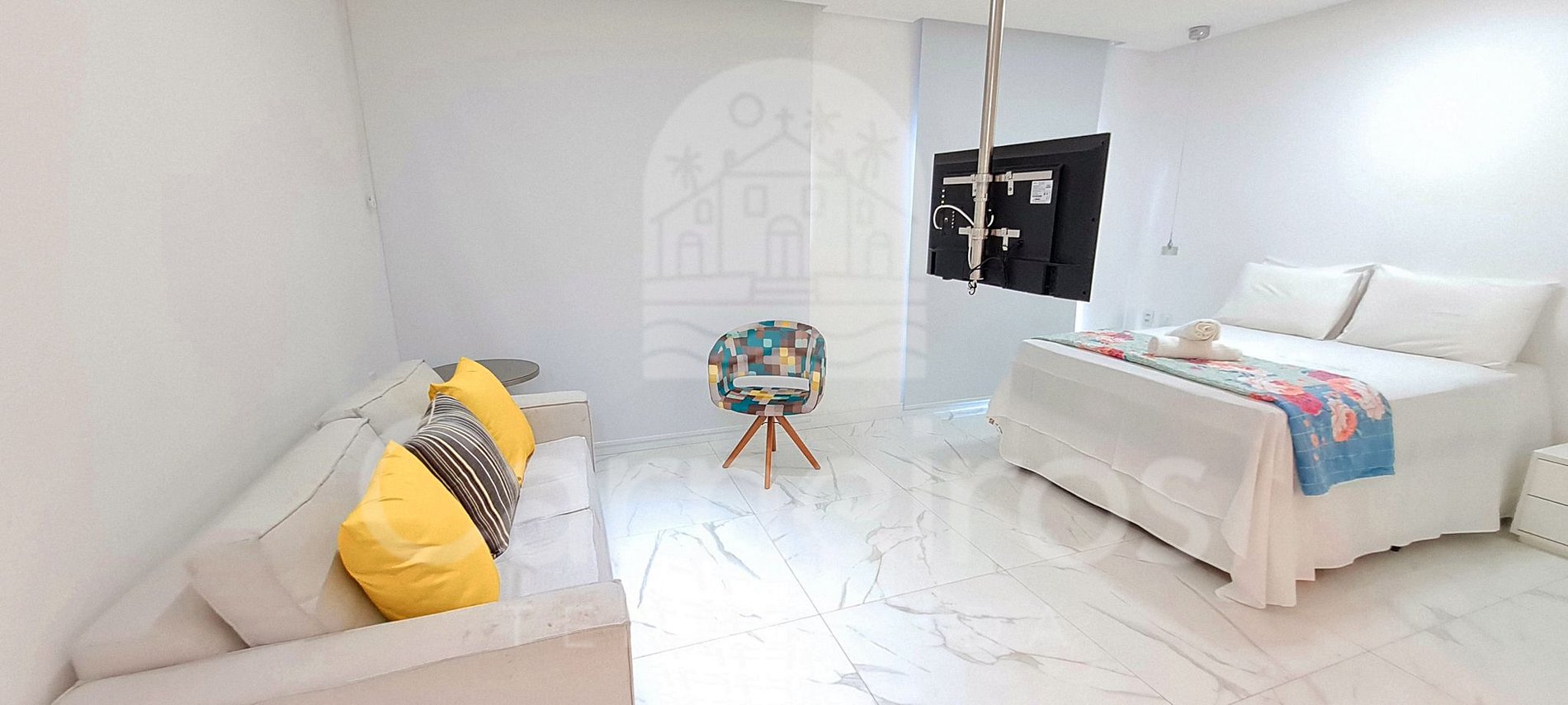 - O Flat Studio está localizado no terceiro andar do prédio, acomoda 05 pessoas;