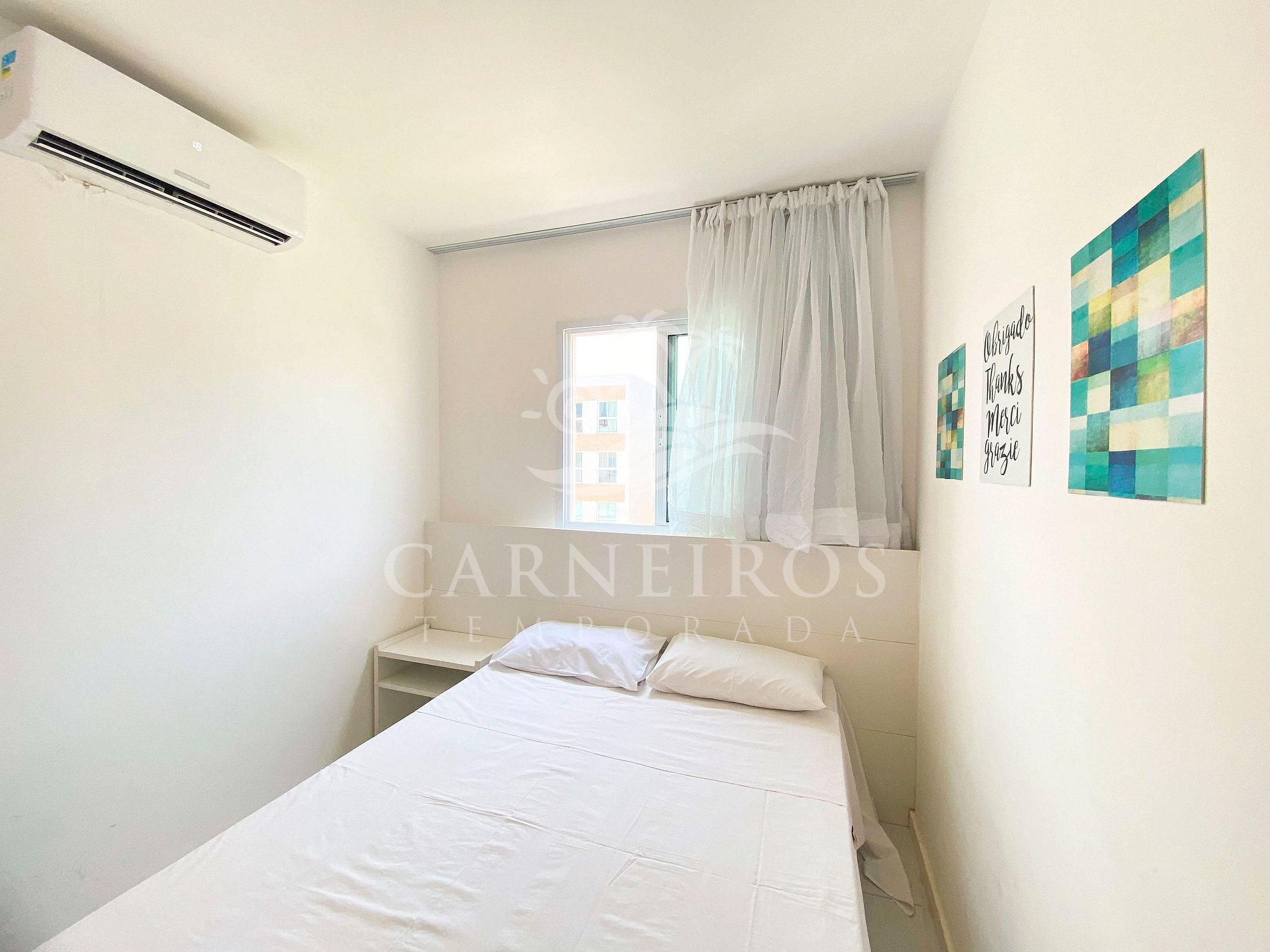 - Quarto 02: cama de casal, armário e ar-condicionado;