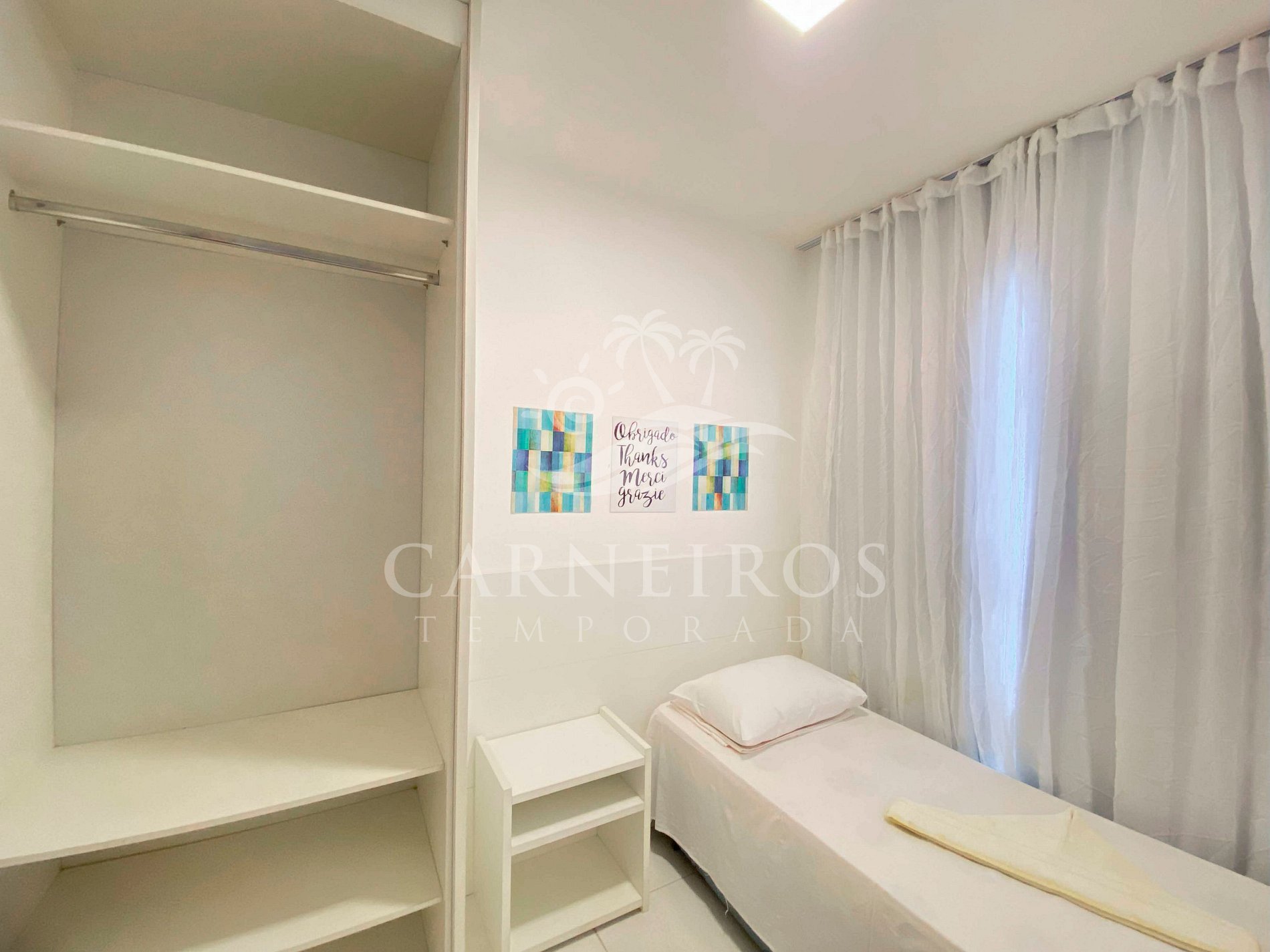- Quarto 03: 1 cama de solteiro com bicama, armários e ar-condicionado.
