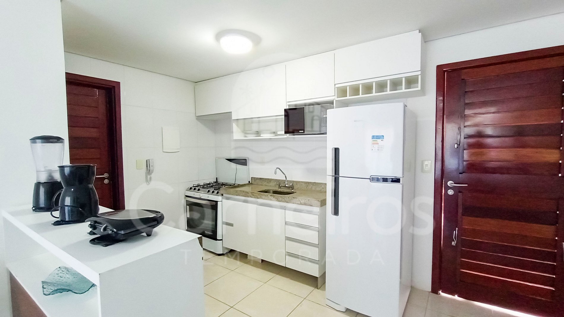 Na sala de estar, além da decoração aconchegante, você encontrará uma Smart TV, sofá-cama de casal e ar-condicionado. A cozinha é completa e possui diversos itens como louça, copos, panelas, talheres, geladeira, fogão, forno, micro-ondas, liquidificador, sanduicheira, torradeira, cafeteira e outros utensílios. Há também uma mesa de jantar e 04 cadeiras. O flat possui 01 banheiro completo.