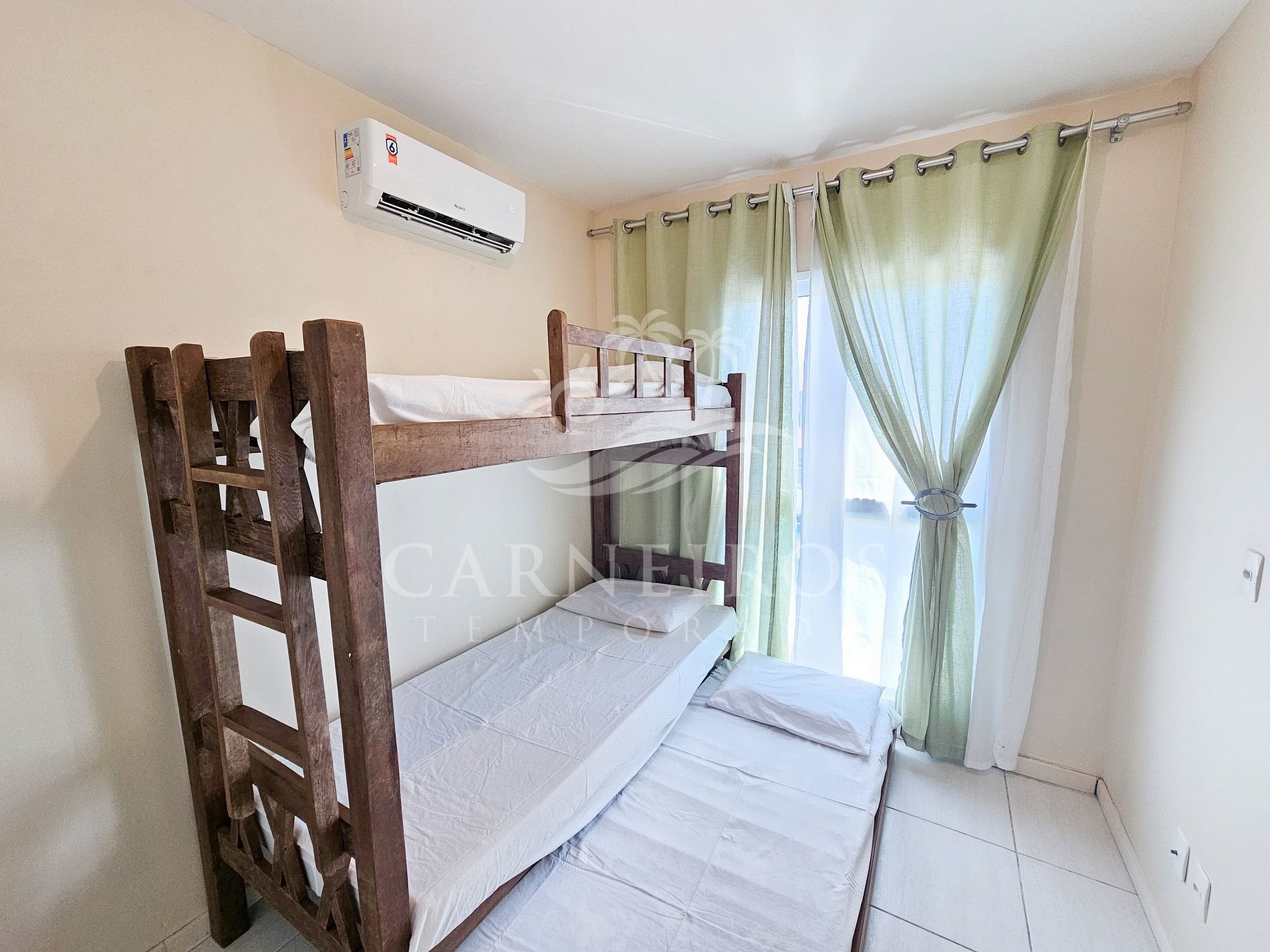 - Quarto 02: Beliche solteiro + colchão, ar-condicionado e armário.