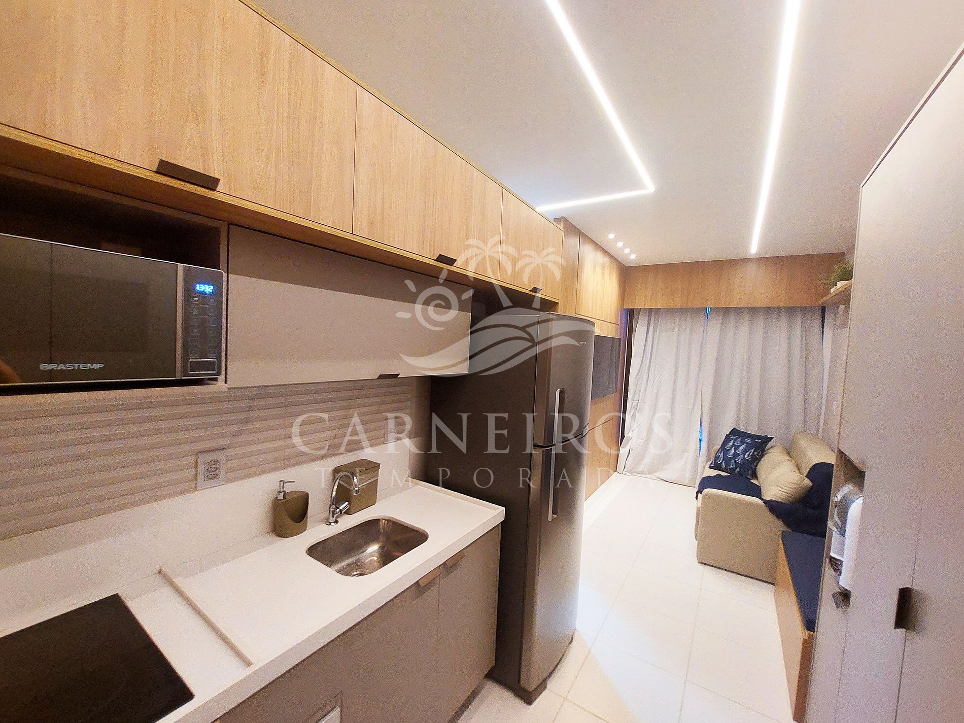 Na sala de estar, além da agradável decoração, você encontrará uma TV e sofá-cama. A cozinha é completa e equipada com os principais utensílios como louças, panelas, talheres, geladeira, micro-ondas, liquidificador e outros. O flat possui 1 banheiro completo.