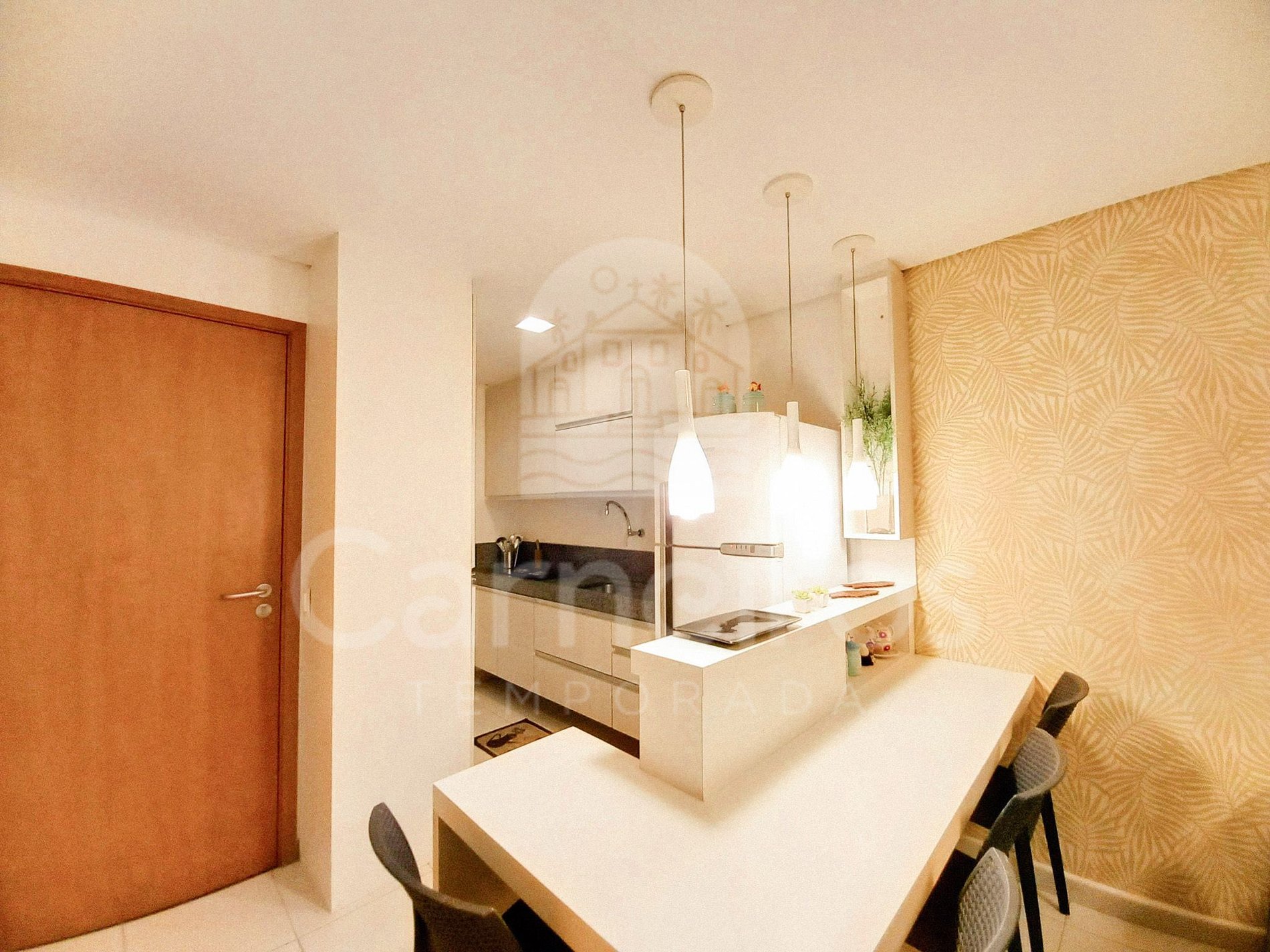 ✹ O flat se encontra no térreo do prédio com vista para o estacionamento e possui uma linda varanda com quatro cadeiras e mesa ✹