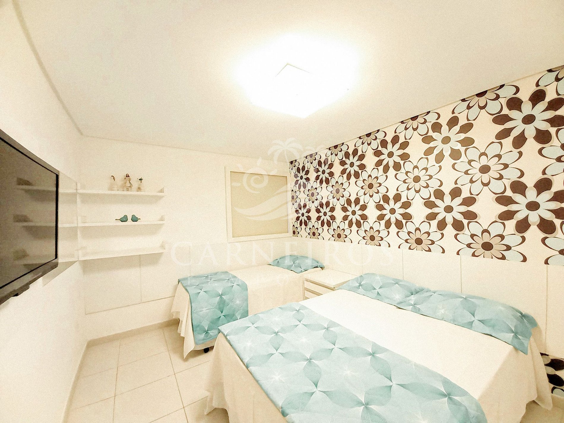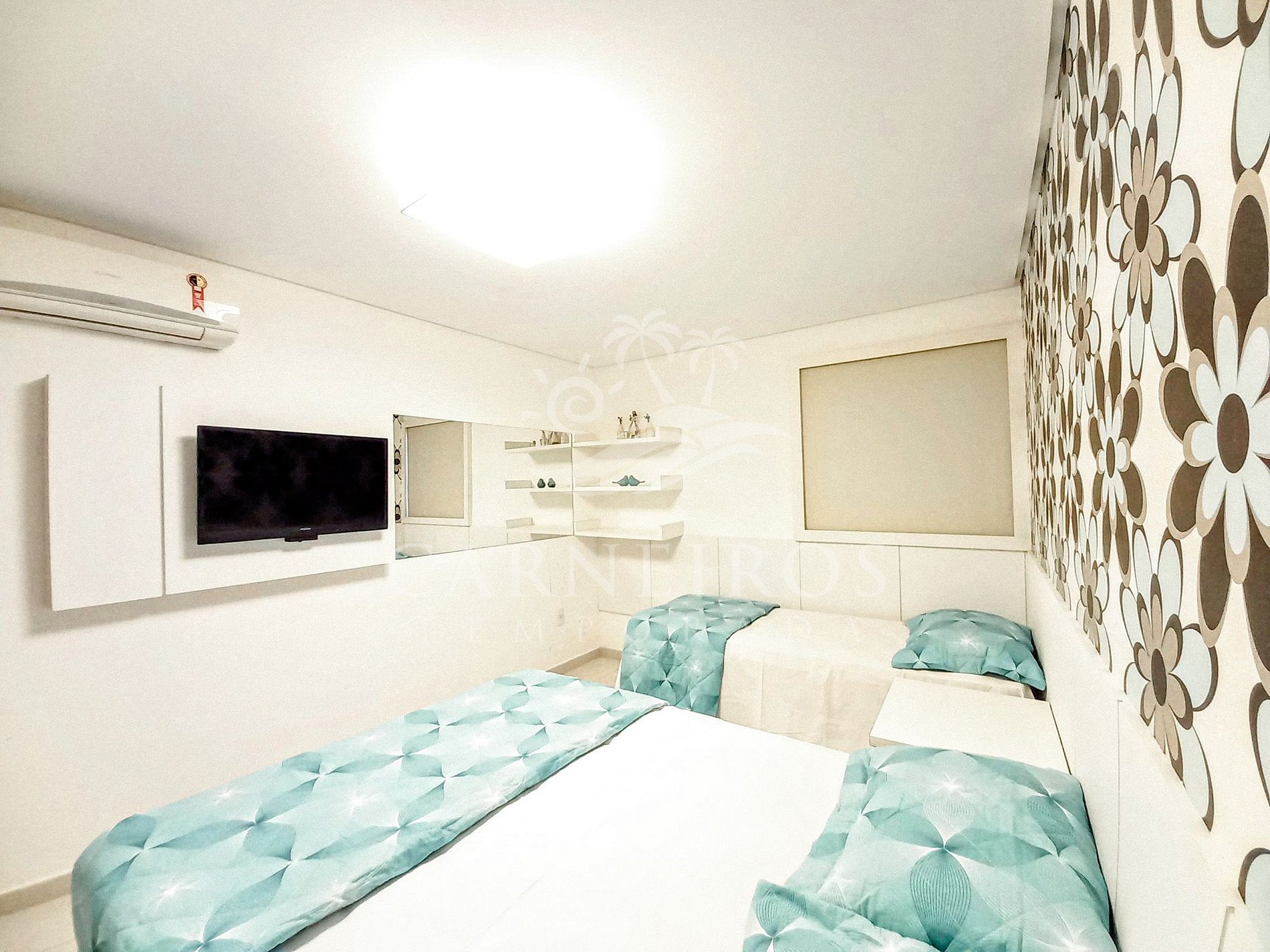 - Quarto 01: 01 cama box de casal + 01 cama de solteiro, armários, ar-condicionado e TV;