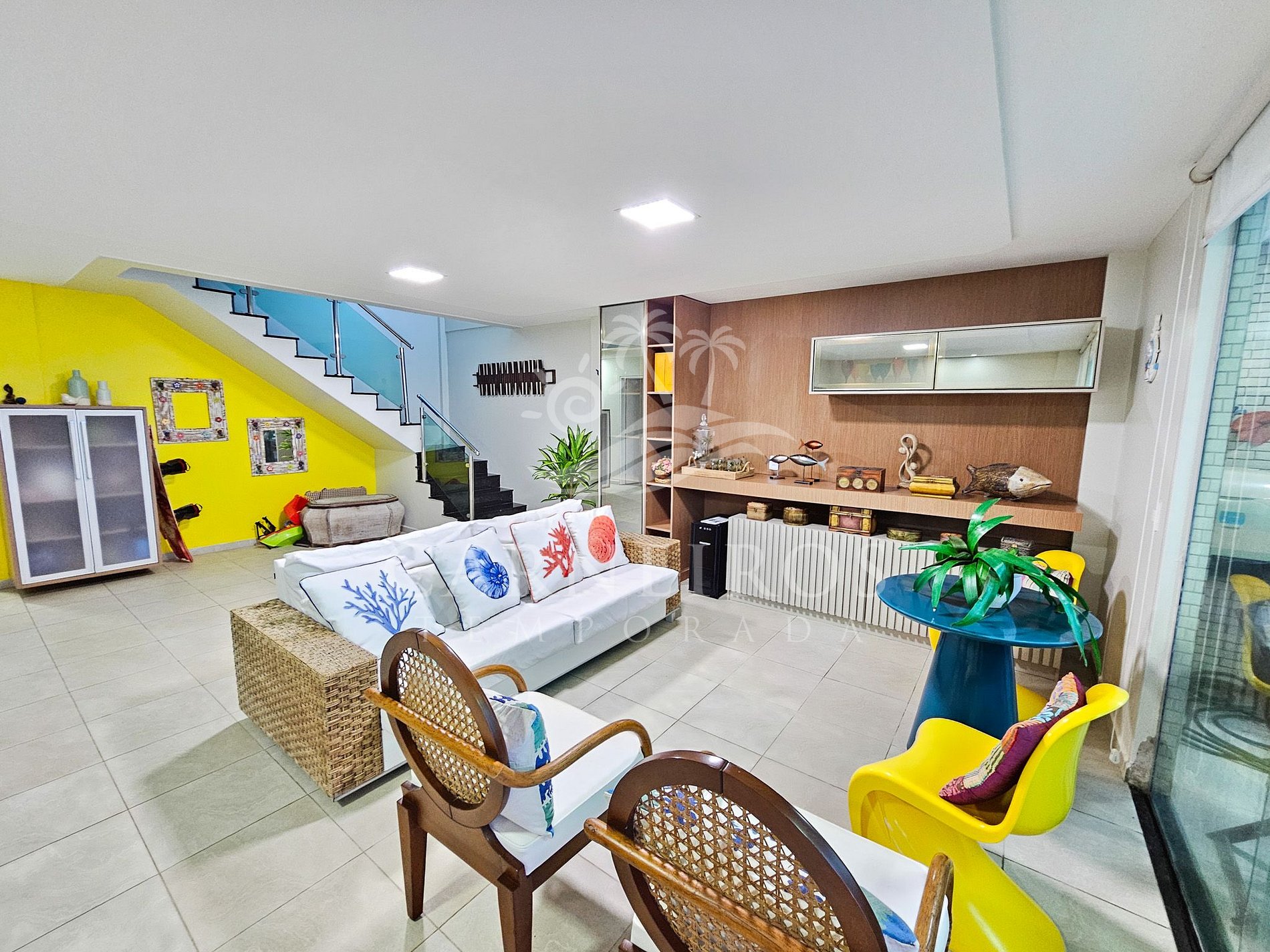 Projetada para oferecer conforto e funcionalidade, a sala possui uma decoração aconchegante e está equipada com sofá, cadeiras, adega, mesa de jantar e mesa de centro. A cozinha apresenta todos os utensílios e equipamentos necessários, como louças, copos, panelas, talheres, fogão, airfryer, forno, micro-ondas, liquidificador, sanduicheira, e diversos utensílios. A propriedade conta com cinco banheiros completos, disponibiliza ferro de passar e maquina de lavar roupas.