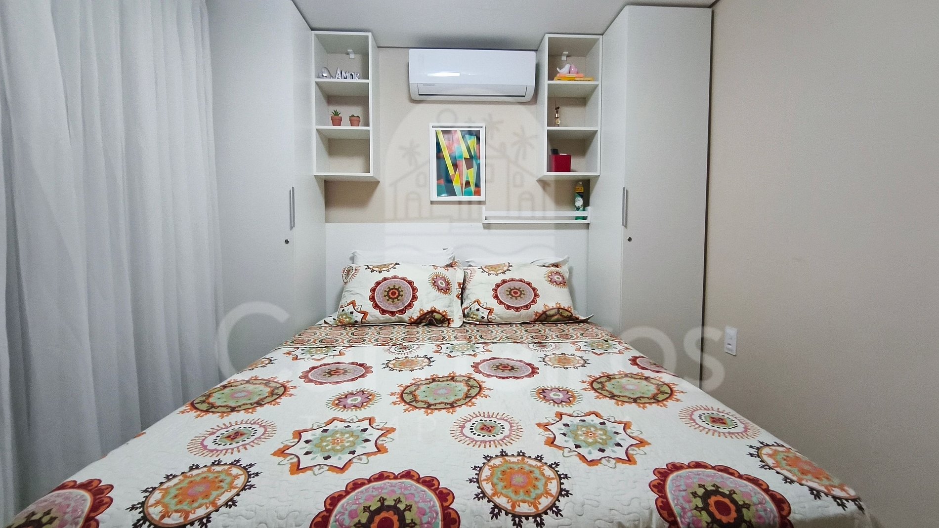 - Quarto1: 01 cama Queen, ar-condicionado e TV;
